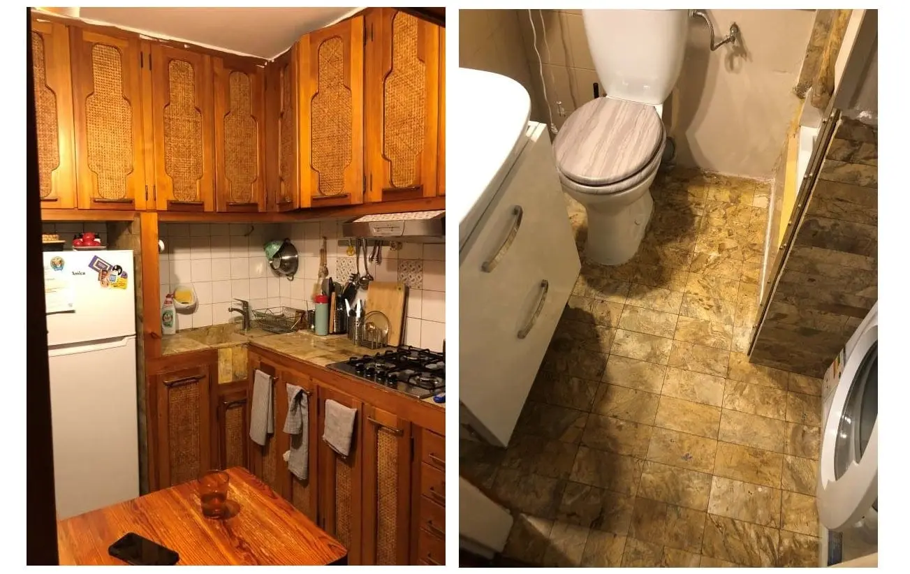 Podczas prac remontowych zachowano elementy z lat 60. wspominaną podłogę marmurową, drewnianą jodełkę, zlew z kamienia, stolik rozkładany, biurko z półkami, które zostało zrobione na wymiar oraz szafy drewniane z ratanem.