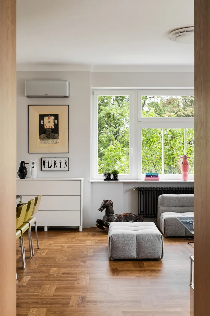 Stary Mokotów ma swoje tempo: zieleń skweru, klimat przedwojennej kamienicy, po sąsiedzku kino Iluzjon. W tej scenerii powstało mieszkanie, które pokazuje, jak połączyć historię miejsca z energią współczesnego życia. Za projektem stoi zespół FUGA Architektura Wnętrz, a partnerką w dialogu o detal i funkcję była niezwykle kreatywna właścicielka. Efekt? Prywatna galeria życia – lekka, jasna i dopracowana, bez rezygnacji z charakteru.