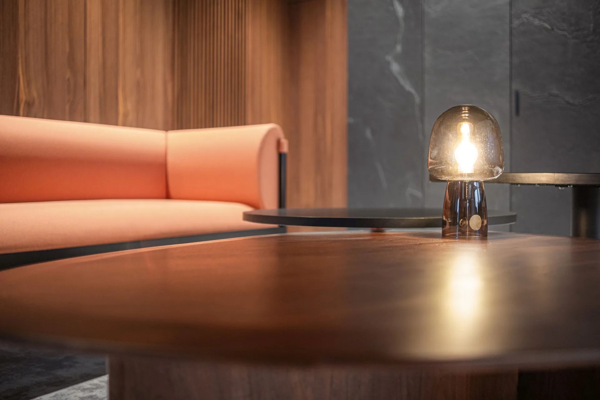Oświetlenie, jak przystało na architektoniczne arcydzieło, nie dominuje – ono prowadzi narrację. Dyrektor firmy szczególnie ukochał delikatne światło nad biurkiem – korzysta z niego wieczorami, gdy biuro zamienia się w jego osobistą przestrzeń refleksji.