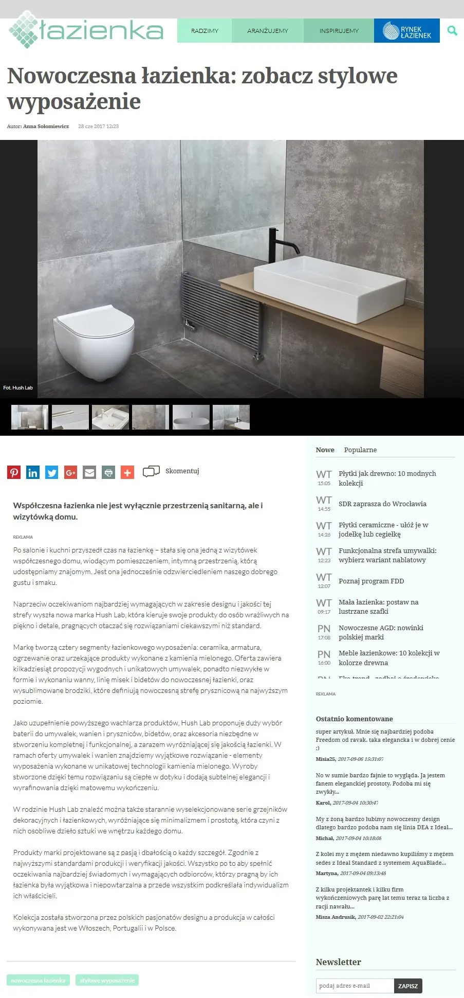 Łazienka często stanowi najbardziej problematyczne miejsce, jeśli chodzi o urządzenie. Niejednokrotnie wynika to z jej dwoistego charakteru: z jednej strony chcemy, aby pełniła rolę prywatnej oazy, w której możemy zrelaksować się po całym dniu pracy, z drugiej stanowi wizytówkę domu, ponieważ jest miejscem często odwiedzanym przez naszych gości. Z tych wszystkich względów powinniśmy zadbać o przemyślaną aranżację tego pomieszczenia. Na przeciw tym wszystkim wyzwaniom staje marka Hush Lub, oferująca wysokiej jakości produkty do wyposażenia łazienki. Więcej o wyrobach tej firmy, przeczytacie na portalu łazienka.pl