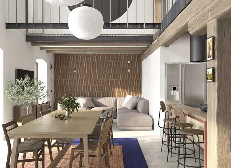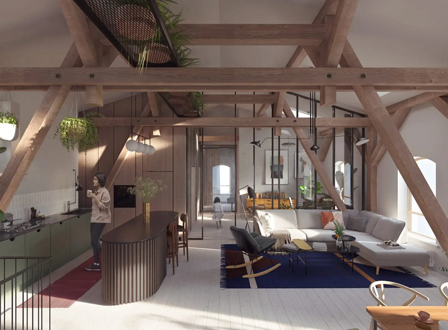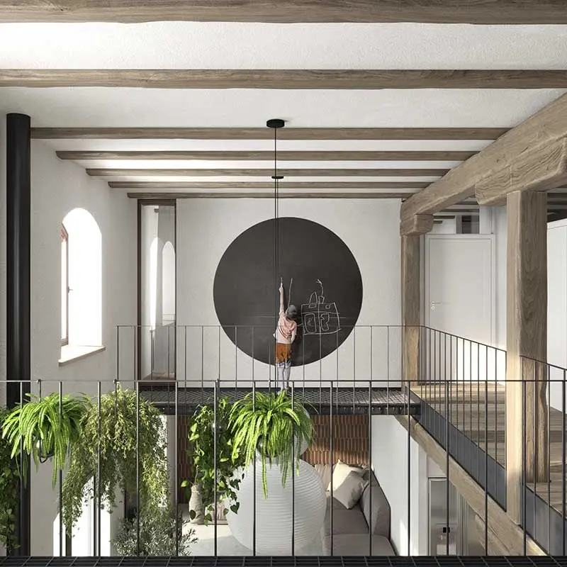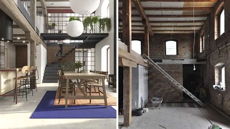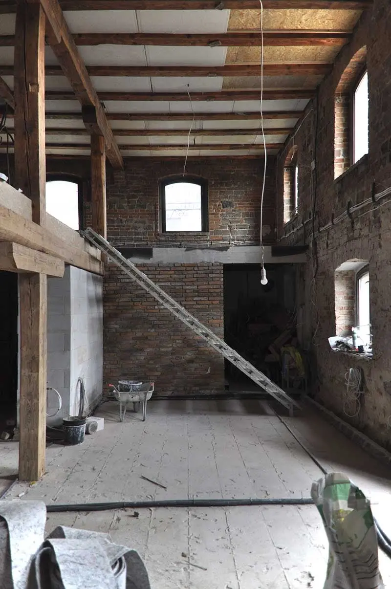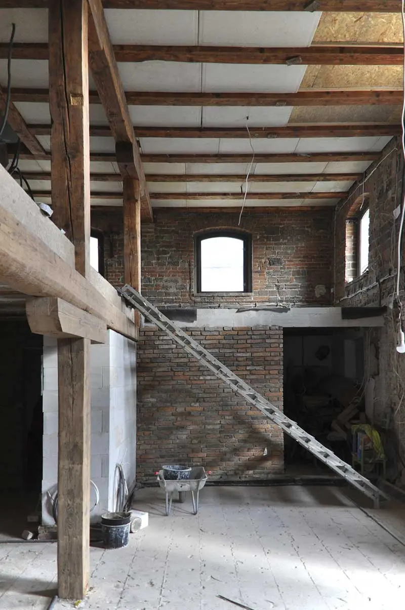 Pierwszoplanowymi bohaterami tej trudnej sztuki budowlanej okazali się właściciele, których ogromna determinacja, pasja oraz ponadprzeciętne zdolności DIY doprowadziły do stworzenia spektakularnej przestrzeni. Zachowana została maksymalna ilość oryginalnych elementów, takich jak drewniane słupy i belki, a te które straciły swoje dotychczasowe funkcje zyskały nowe zgodnie z zasadą budowlanego zero waste.