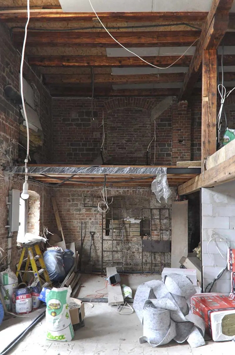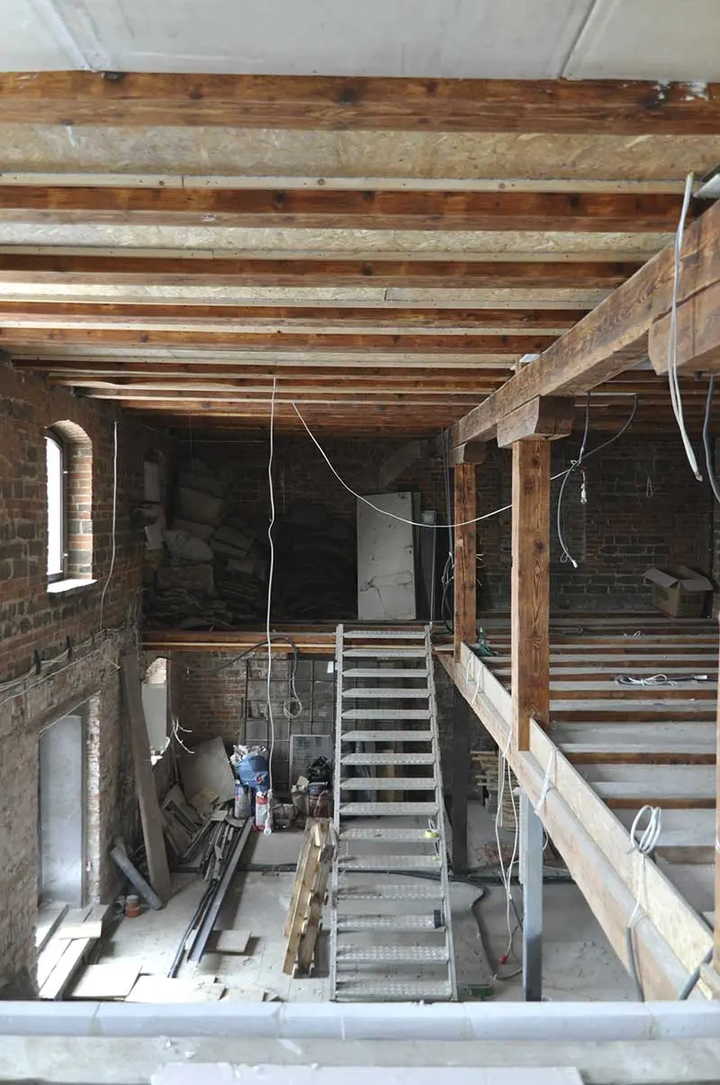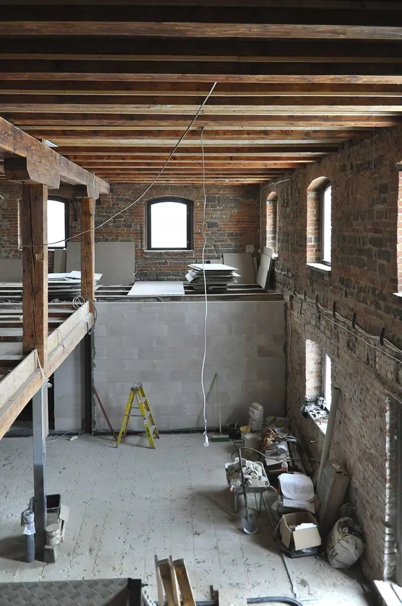 Dosłownie i w przenośni: 6 osobowa rodzina na 4 kondygnacjach 120 letniego młyna oraz start prac budowlanych w czasach pandemii to tylko niektóre z wyzwań jakie wiązały się z projektem adaptacji młyna. Ze względów termicznych i z uwagi na wysokie wymagania energoefektywności budynku, młyn musiał zostać docieplony od wewnątrz w technologii dedykowanej dla obiektów zabytkowych. Od zewnątrz nie było to możliwe ze względu na wymogi konserwatorskie.