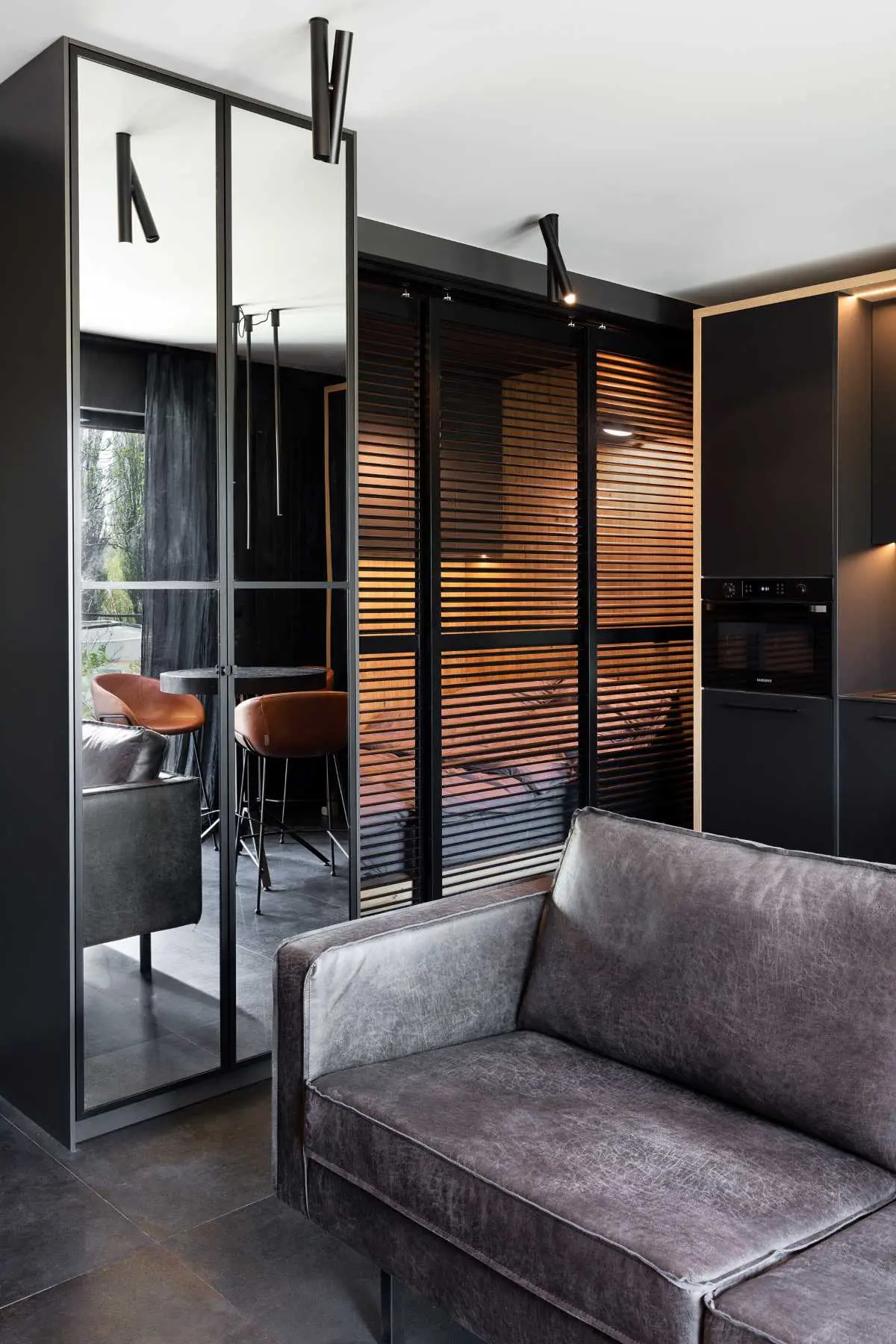 Nabywca tej kawalerki nie obawiał się małego metrażu. To zrozumiałe – miał wcześniej niejedną okazję współpracować ze studiem 2form, co dało mu pewność, że prowadzące ją architektki wnętrz z sukcesem poradzą sobie ze wszystkimi wyzwaniami przestrzeni, od funkcjonalnych po wizualne. A wyzwania te były odwrotnie proporcjonalne do szczupłego metrażu. – Na 29 metrach kwadratowych trzeba było zmieścić wszystkie funkcje domu. Co więcej, inwestorowi zależało, by w pierwotnie jednopokojowym mieszkaniu jednak wyodrębnić strefę sypialni z możliwością zamknięcia, oddzielenia od części dziennej – opowiada Anna Gostomczyk, projektantka i właścicielka 2form