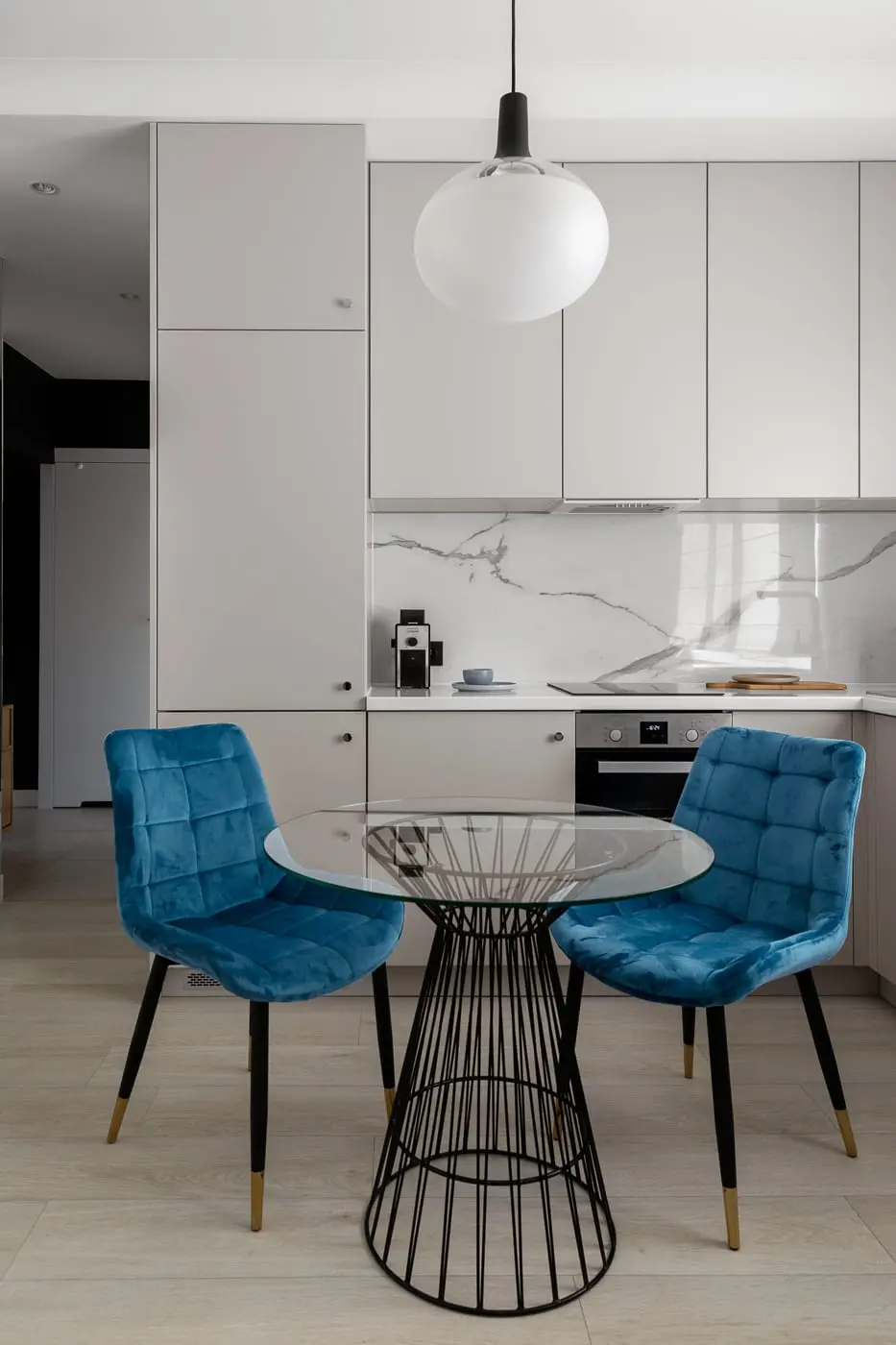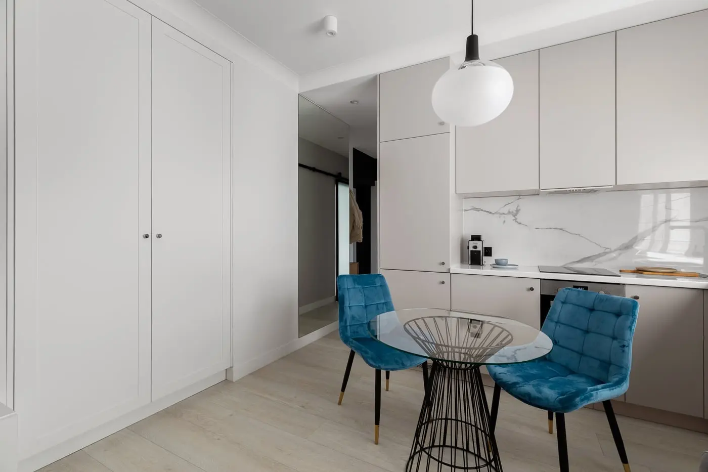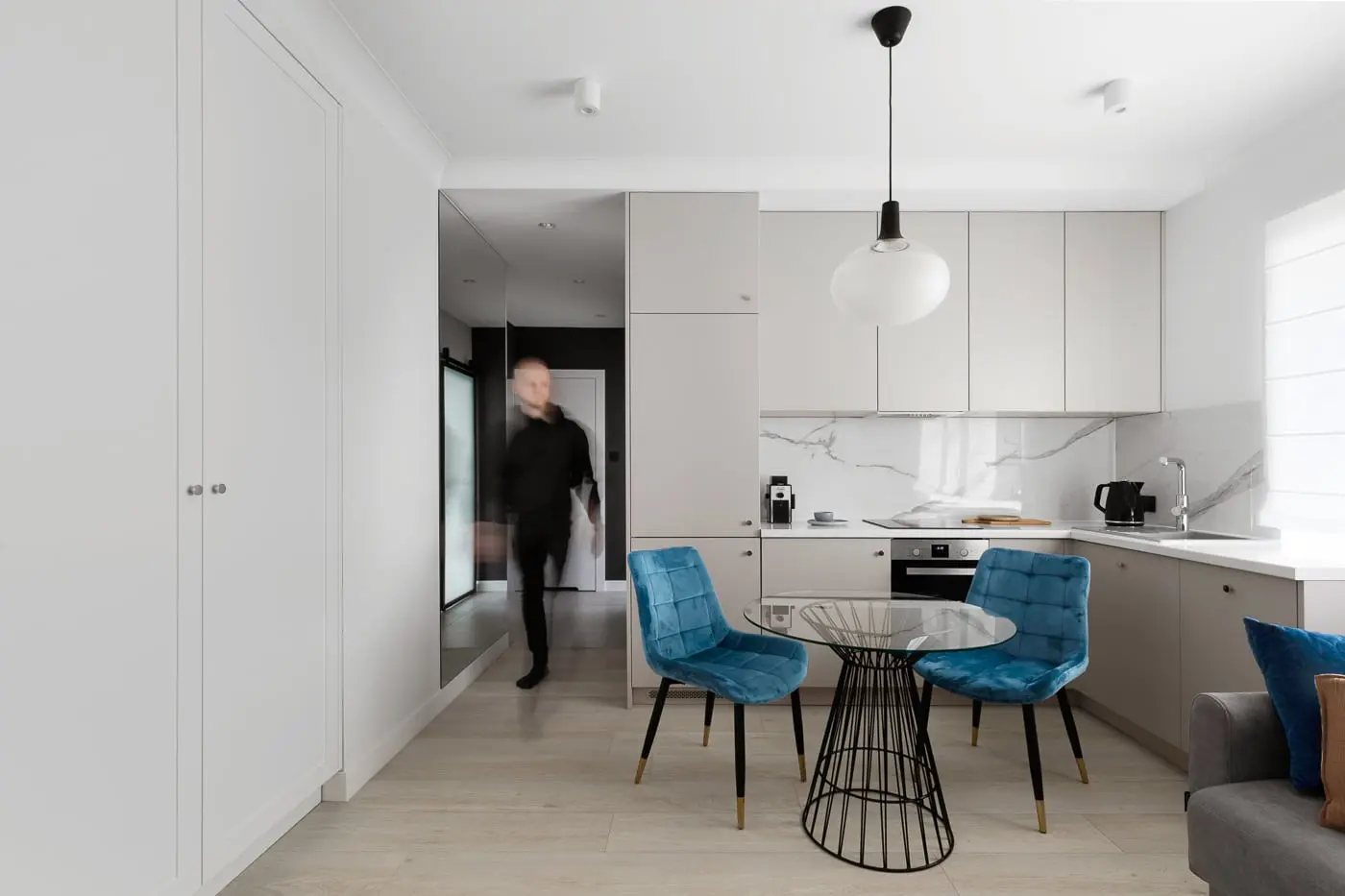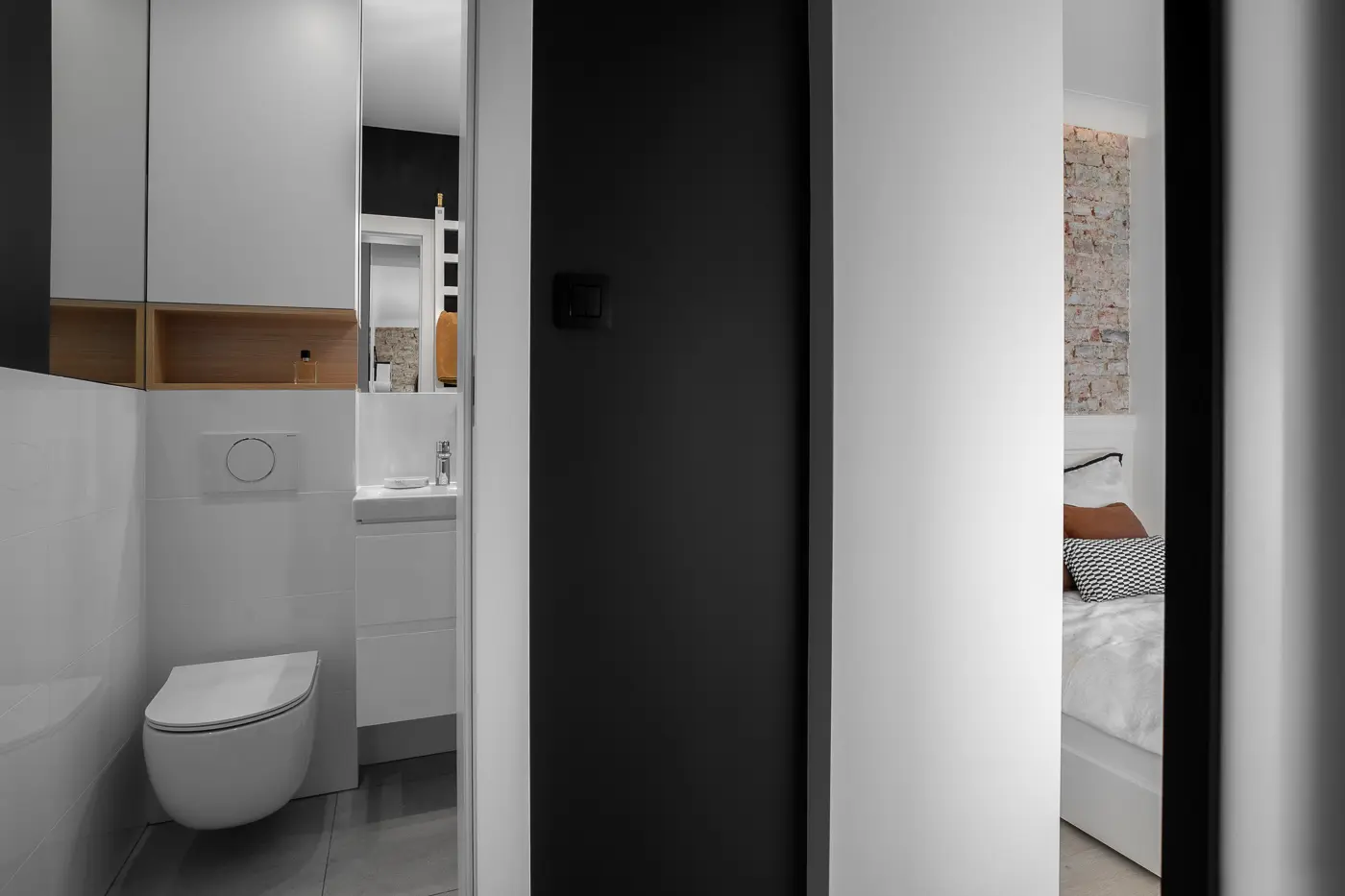 – Wnętrze przeznaczone było do gruntownego remontu. By uzyskać maksymalnie funkcjonalny układ przestrzeni zaproponowałem bardziej inwazyjny i złożony remont. Dzięki temu powiększona została łazienka, która wcześniej rozmiarem przypominała toaletę, mieszkanie zyskało również sypialnię, która znajduje się w miejscu dawnej kuchni. Ta z kolei znalazła swoje miejsce w pokoju dziennym w postaci niewielkiego aneksu. Mieszkanie bez tych zmian nie byłoby komfortowe i funkcjonalne – mówi projektant.