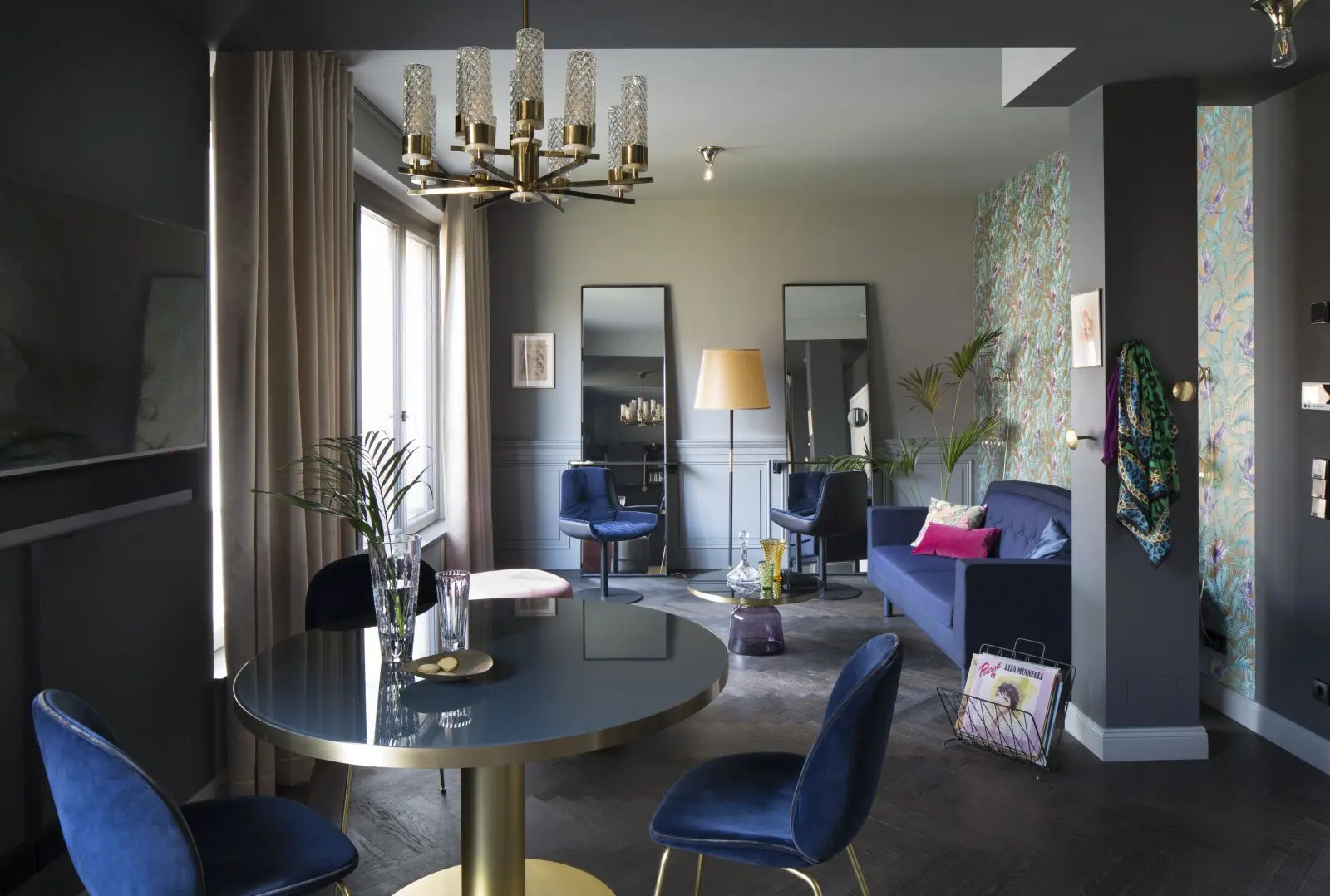W kontekście charakteru dzielnicy nie ma się co dziwić, że Michał Gulajski zdecydował się na stylizację wnętrz w duchu eklektyzmu – w tym stylu, tak jak w mieszkaniu i najbliższej okolicy, nie ma miejsca na sztampowość i nudę.