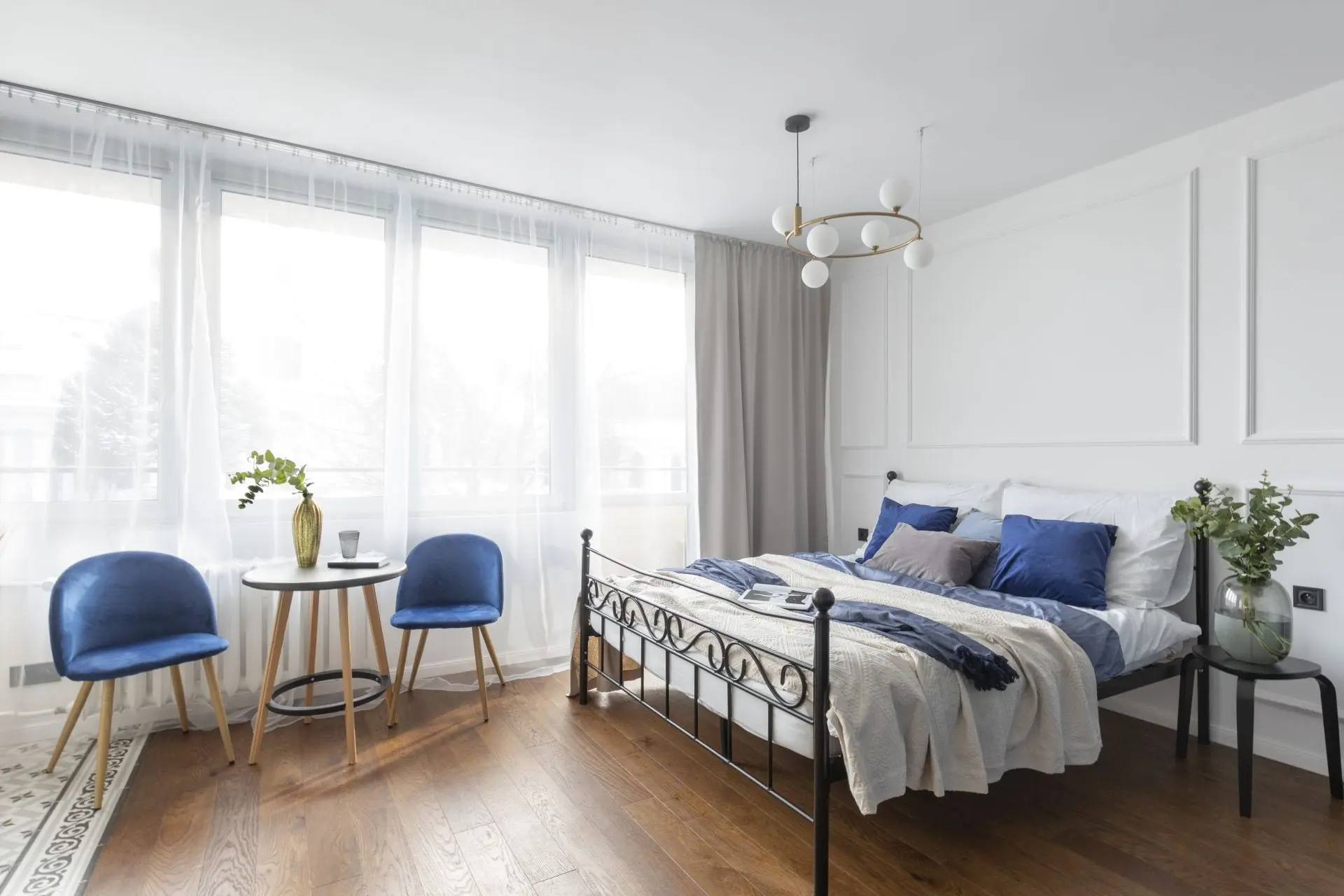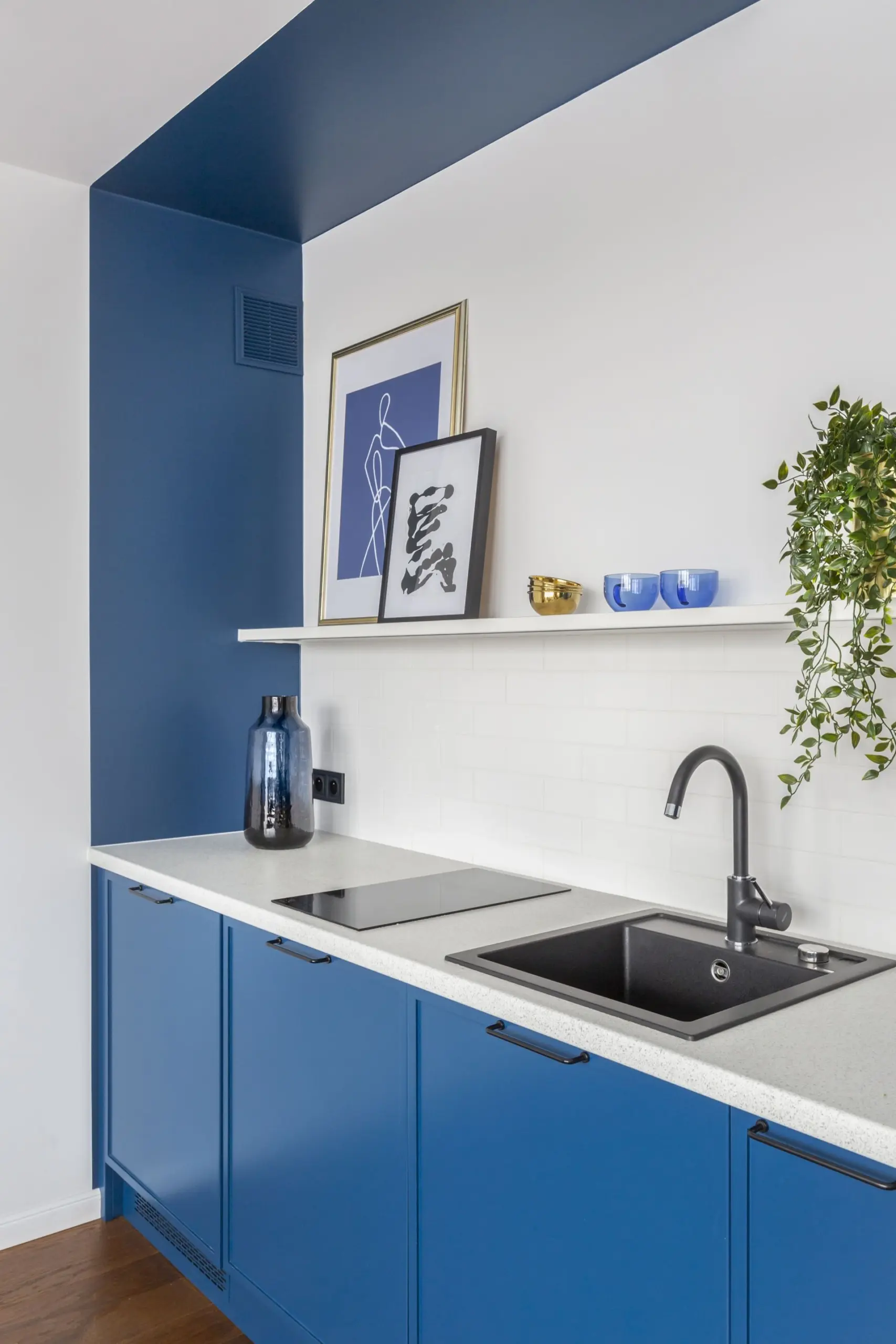 Mieszkanie znajduje się w samym sercu miasta, na ulicy Senatorskiej, nieopodal Placu Teatralnego i Starego Miasta. To kawalerka o powierzchni 25 metrów kwadratowych, przeznaczona na wynajem, stworzona jako przestrzeń dla par, które przyjeżdżają tu na krótki pobyt. Niewielka powierzchnia stanowiła wyzwanie dla pracowni Decoroom, której powierzono projekt wnętrz. W efekcie powstało przytulne i komfortowe miejsce wypełnione starannie wyselekcjonowanym designem. Królują tu proste formy i piękny, głęboki odcień niebieskiego, który wycisza i uspokaja.