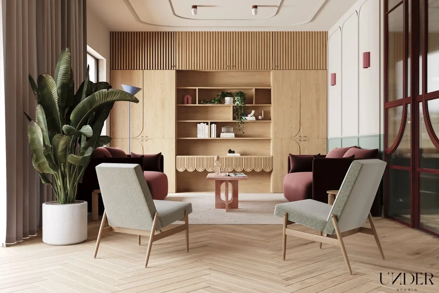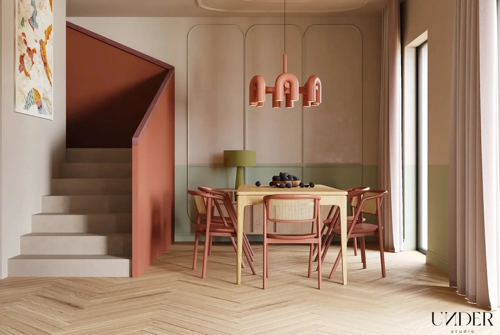 Ten przepiękny kolorowy projekt wnętrza został stworzony dla rodziny z dwójką dzieci. Architektka Agnieszka Kułakowska z pracowni Under Studio pragnęła stworzyć przytulny, nasycony kojącymi barwami dom. Ciepła atmosfera jaka panuje w tym wnętrzu to zasługa znakomitemu doborowi kolorów, faktur oraz materiałów. Przekonanie architektki, że wnętrza powinny mieć indywidualny i osobisty charakter, dało przestrzeń dla eksperymentu i wolności artystycznej ekspresji.