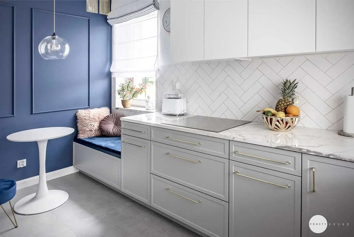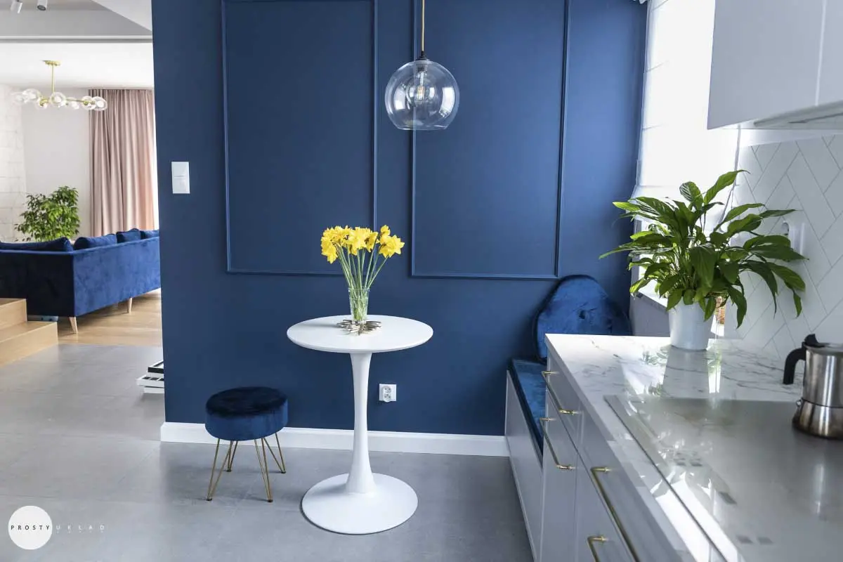 Classic Blue, marmur i glamour w domu dla rodziny | Proj.: Prosty układ