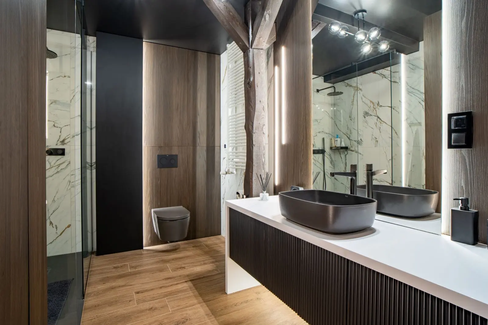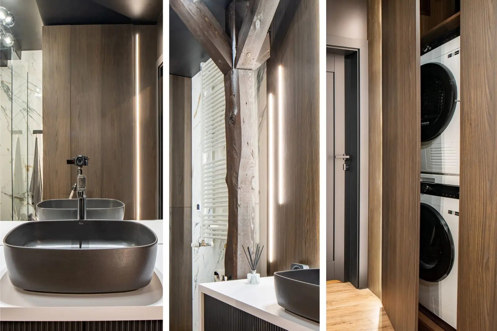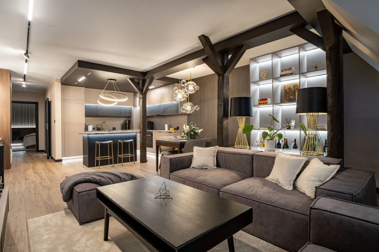 W sektorze projektowania wnętrz zawsze pojawiają się nowe trendy i style, które zmieniają sposób, w jaki projektujemy i urządzamy przestrzenie mieszkalne. Po jasnych, pastelowych aranżacjach jednym z najbardziej fascynujących i niekonwencjonalnych trendów, który zyskuje coraz większą popularność, jest styl Dark Living. Ten nowoczesny i odważny sposób aranżacji wnętrz wyróżnia się głębokimi kolorami, luksusowymi materiałami i tajemniczym klimatem. Żeby jednak nie wykreować wnętrza w konwencji mrocznego minimalizmu, a przy małej ilości okien było dużym ryzykiem, znajdziemy tu również dużo jasnych powierzchni. Takie właśnie miało być mieszkanie Inwestorki. Przedstawiamy Wam 82 metrowe mieszkanie w Olsztynie zaprojektowane przez Interior360 Mirella i Marcin.