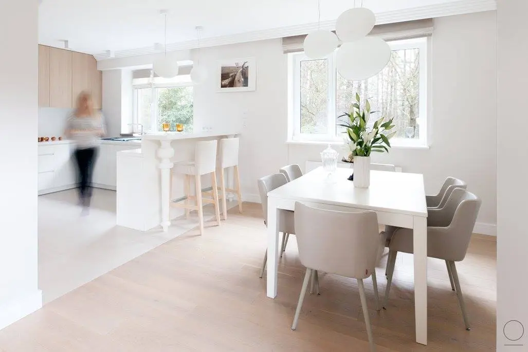 Przepiękna, nowoczesna realizacja wnętrza domu na Mazurach, utrzymana w duchu skandynawskim. Drewno i biel to główne elementy tego wnętrza, gdzieniegdzie można odnaleźć szarości i beton. Wnętrze przestronne, minimalistyczne i przyjazne relaksowi. Kuchnia z szafkami zamontowanymi do samego sufitu, funkcjonalna i nowoczesna. Przepiękna łazienka z wanną wolnostojącą oraz prysznicem, to realizacja marzeń nie jednej osoby. Projekt pracowni architektonicznej z Warszawy Oikoi.