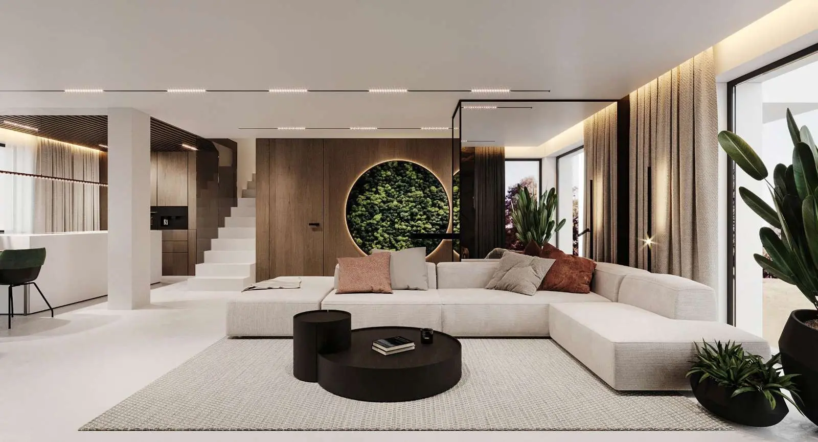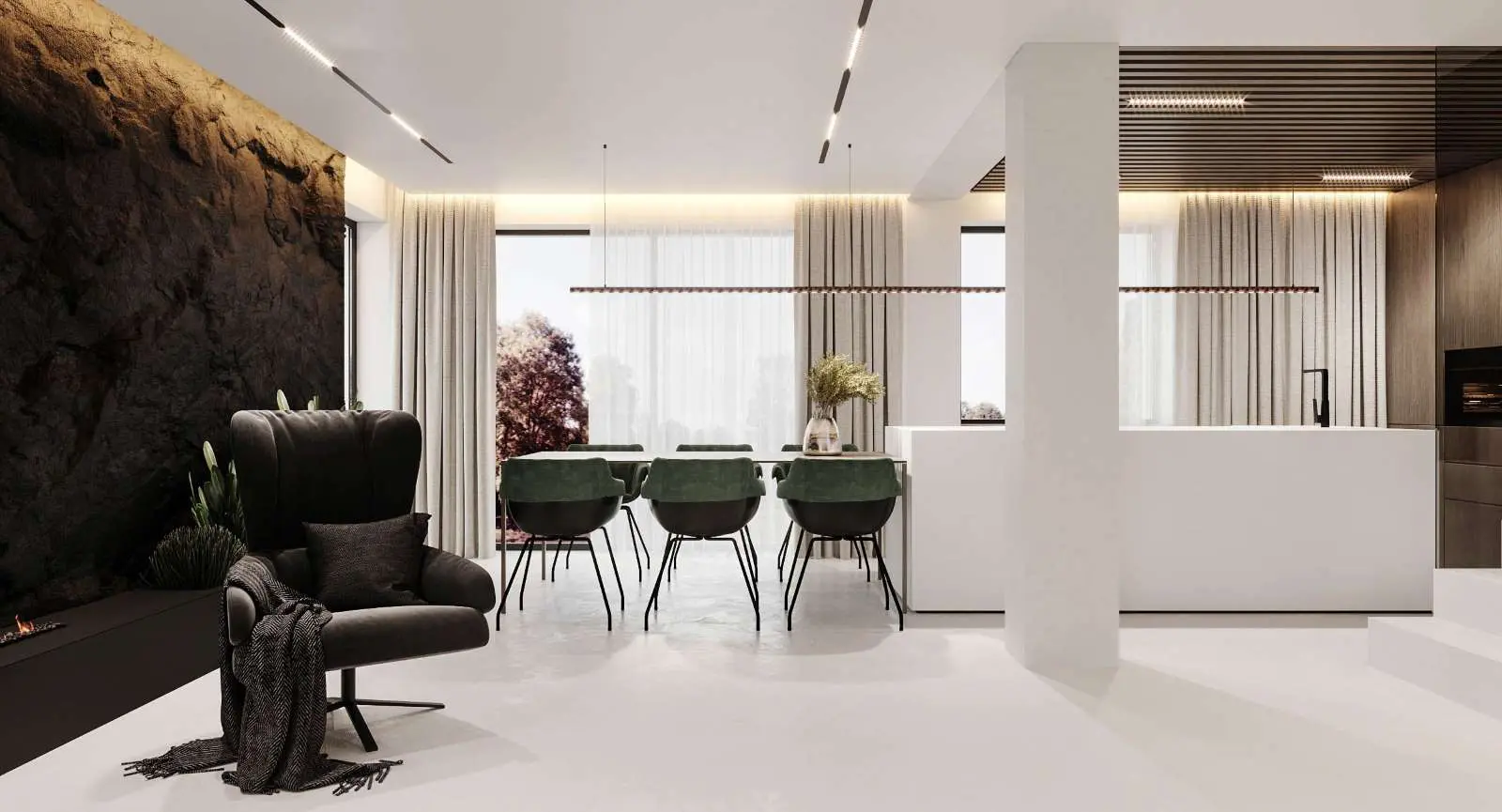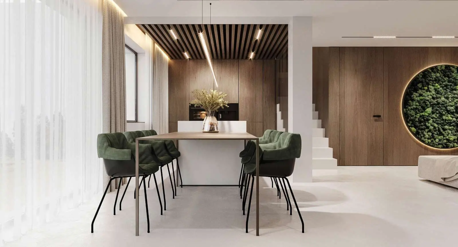 W domu pod Warszawą, bliskim naturze, trzyosobowa rodzina znajduje wytchnienie i radość obcowania z nowoczesną architekturą i najlepszym designem. Wnętrza autorstwa pracowni Modeko.Studio uspokajają, wyciszają i sprzyjają wypoczynkowi. Nie przytłaczają zbyt wieloma elementami. Są minimalistyczne, ale nie zimne i nieprzytulne, lecz ciepłe i przyjazne. Proste formy, naturalne materiały, stonowane barwy, zieleń – zapewniają domownikom dobre samopoczucie.