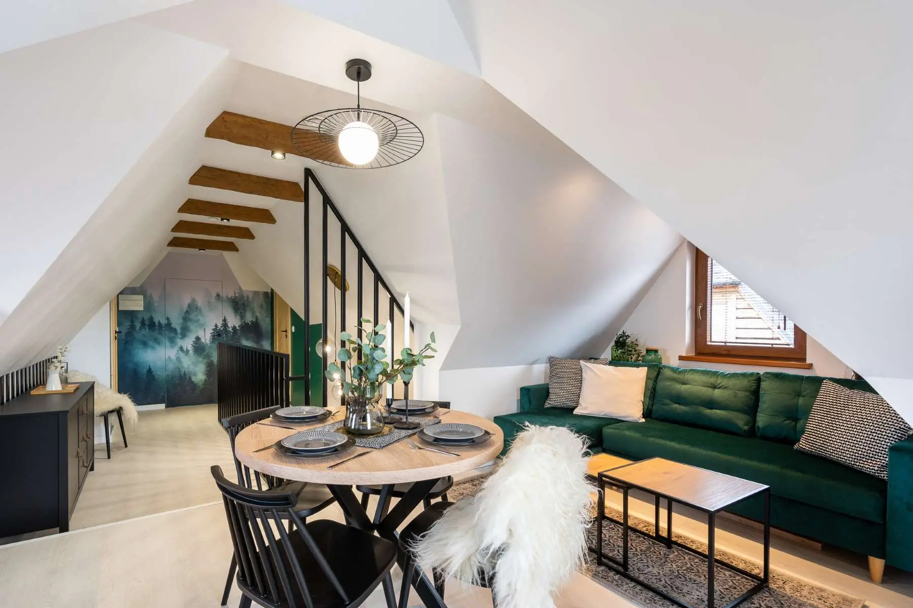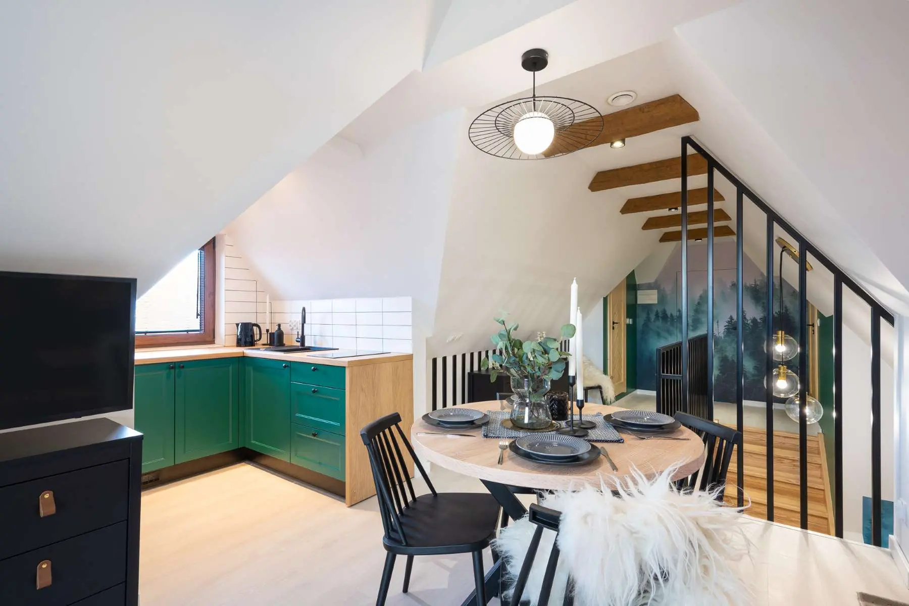 Dwupoziomowe wakacyjne mieszkanie z elementami stylu zakopiańskiego