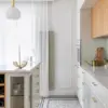 Połączenie klasycznych wzorów, delikatnej sztukaterii i oryginalny dobór kolorów od razu wywołuje uczucie ciepła i komfortu, jednoczenie solidnie osadzając nas w nowoczesnej rzeczywistości. Po wejściu do mieszkania zwracają na siebie uwagę płytki podłogowe tworzące kwiatowy, geometryczny wzór. Oryginalny odcień zieleni na ścianach, ukryte drzwi do pomieszczeń oraz funkcjonalna, drewniana zabudowa stolarska zapowiadają wyjątkowe wrażenia.