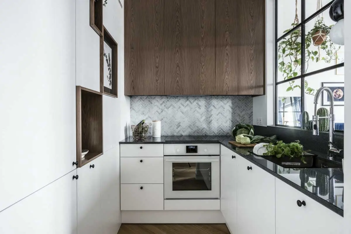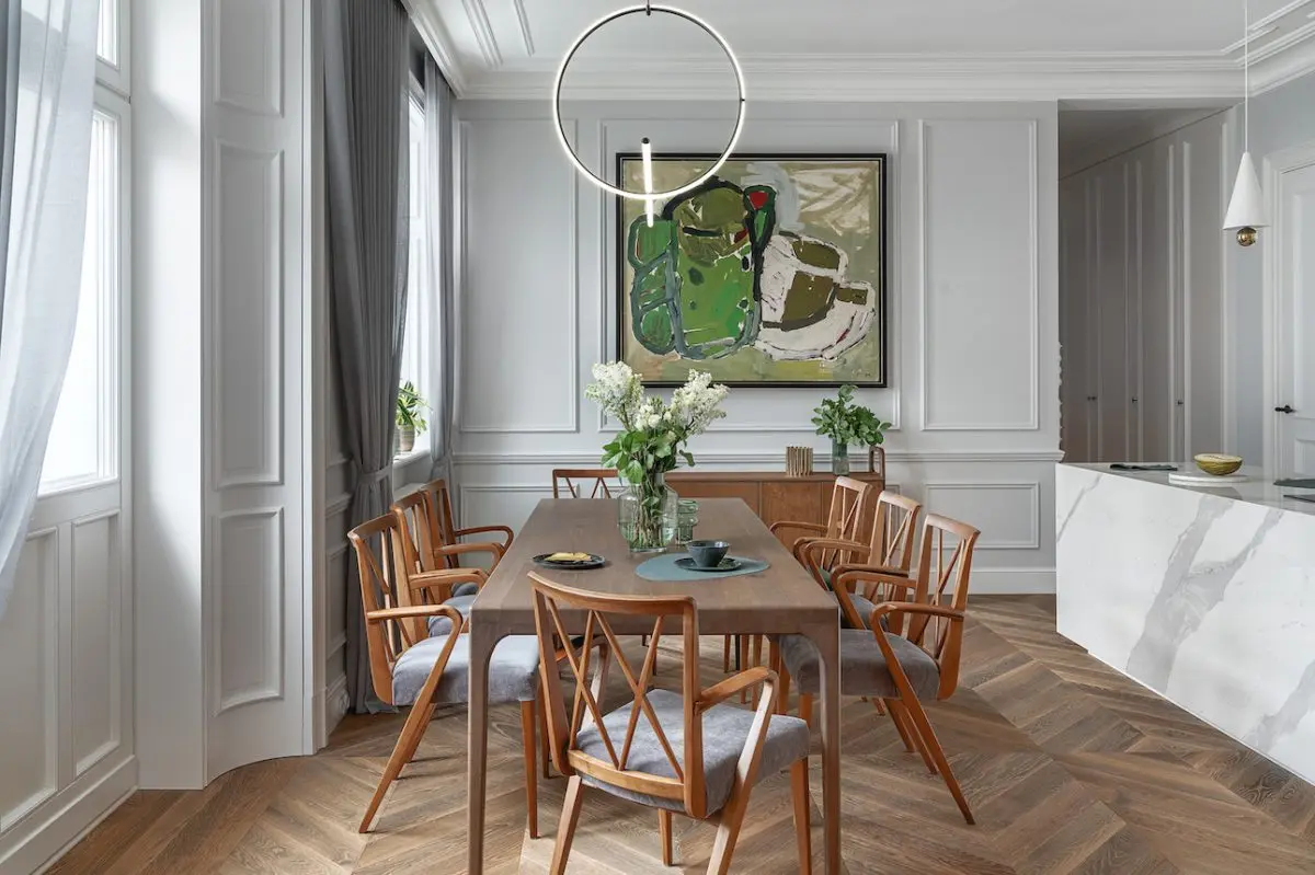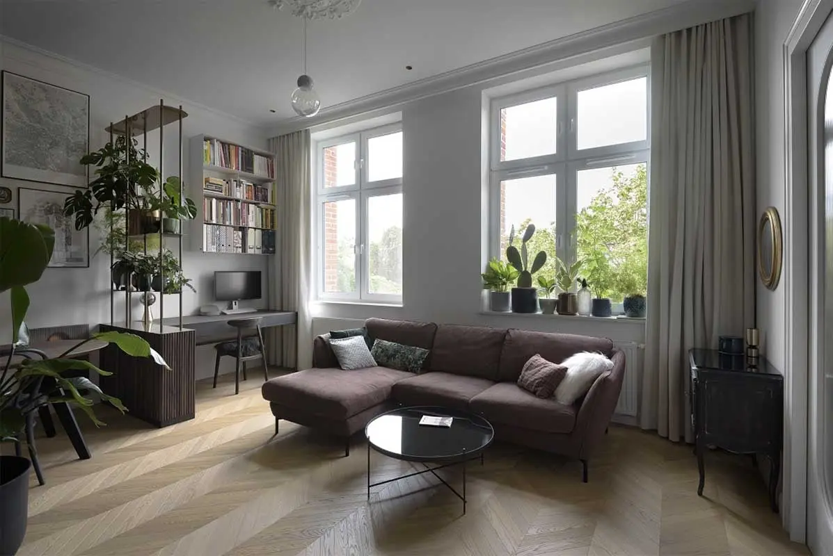 Jodełka francuska, klasyczna, węgierska. Jodełka z drewnianych klepek, płytek, a może tapeta ze wzorem jodełki? Układ w jodełkę na podłodze, ścianie, łazience, kuchni….chyba nie ma miejsca, w którym ten ponadczasowy wzór, by się nie sprawdził. Wykorzystywany od setek lat układ, obecnie przeżywa swój wielki rozkwit. Popularność stylu eklektycznego, inspirowanego francuskimi kamienicami, przyczynił się do powrotu drewnianych parkietów z układem w jodełkę. Natomiast pojawia się on też na innych powierzchniach. Jodełka pięknie prezentuje się na ścianach, jako lamperia, a nawet jako nowoczesna boazeria. Jodełka równie chętnie wykorzystywana jest w łazienkach dla wykończenia ściany pod prysznicem, strefy umywalki i oczywiście podłogi. Nawet grafiki tapet posiadają motyw jodełki. Jedno jest pewne – jodełka zawładnęła aranżacją wnętrz i nic nie wskazuje na to, by straciła na popularności. W okresie świątecznym jodełka kojarzy nam się tylko z drzewkiem bożonarodzeniowym. Dlatego postanowiliśmy wykorzystać ten czas, by zainspirować Was najlepszymi projektami z jodełką w różnych wariacjach i konfiguracjach. Zapraszamy!