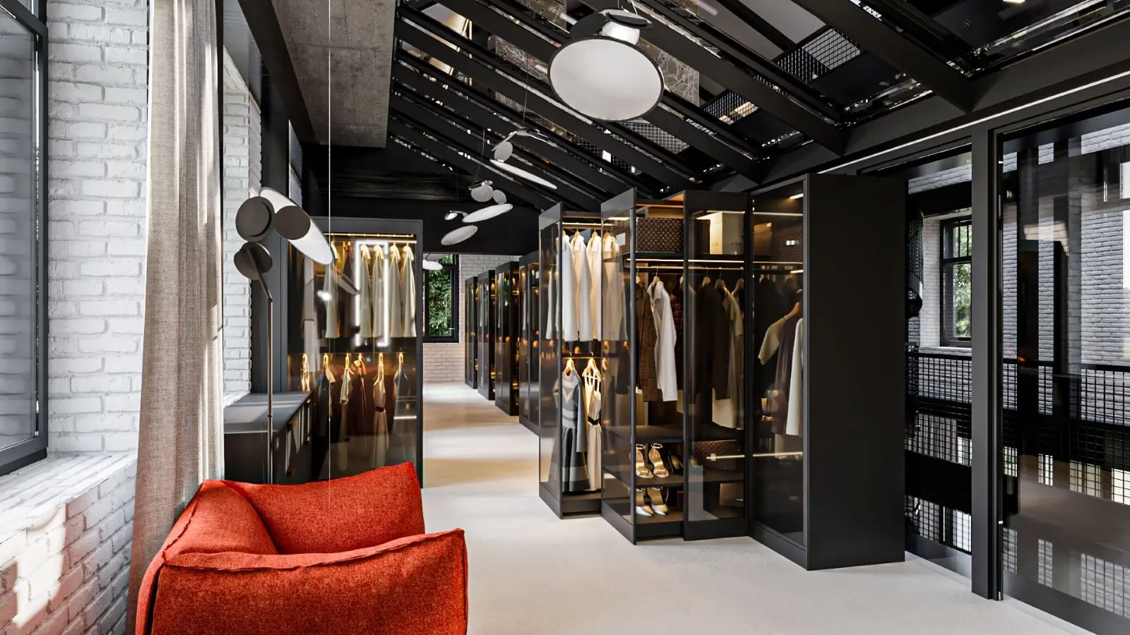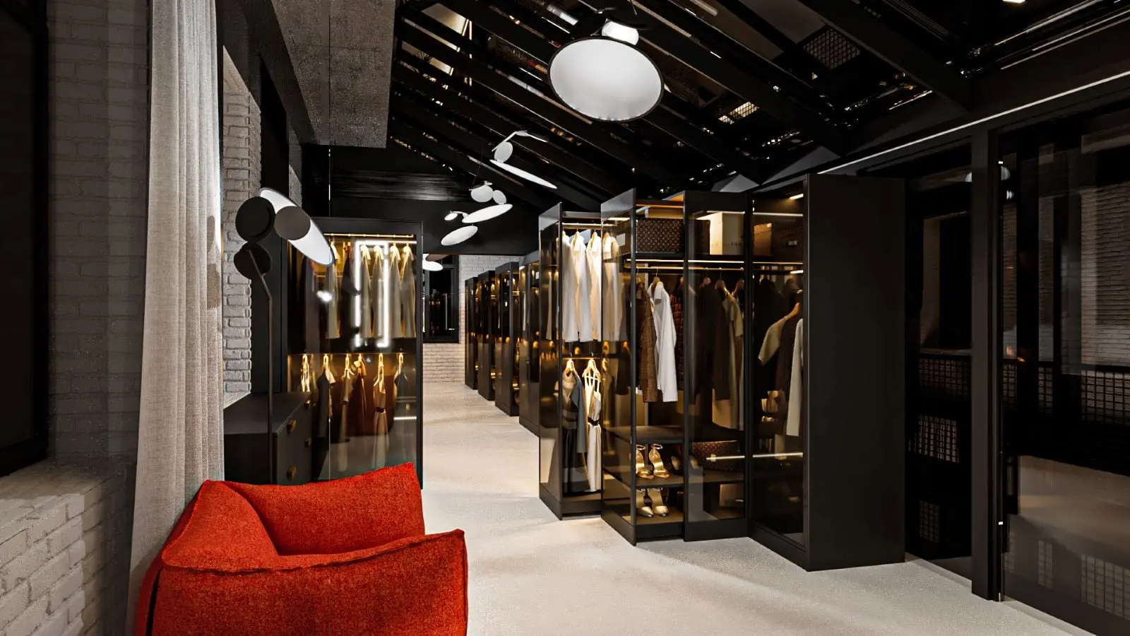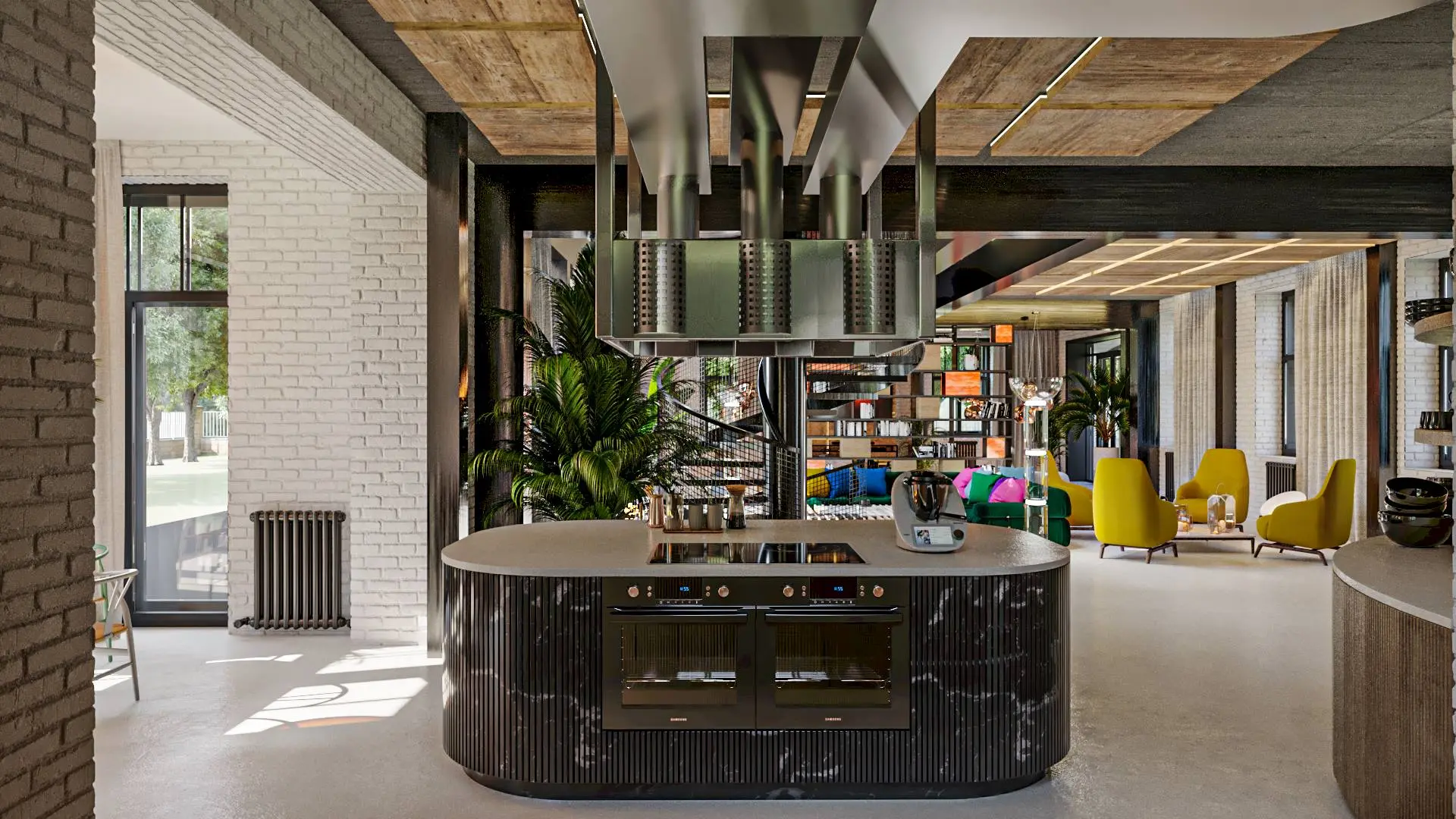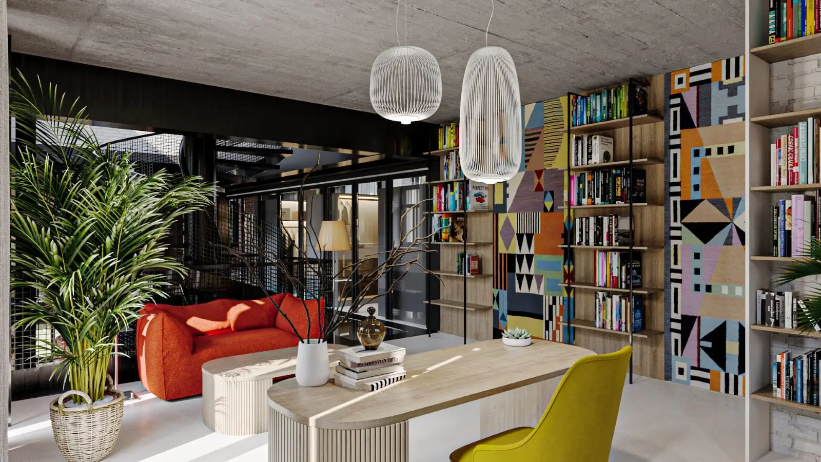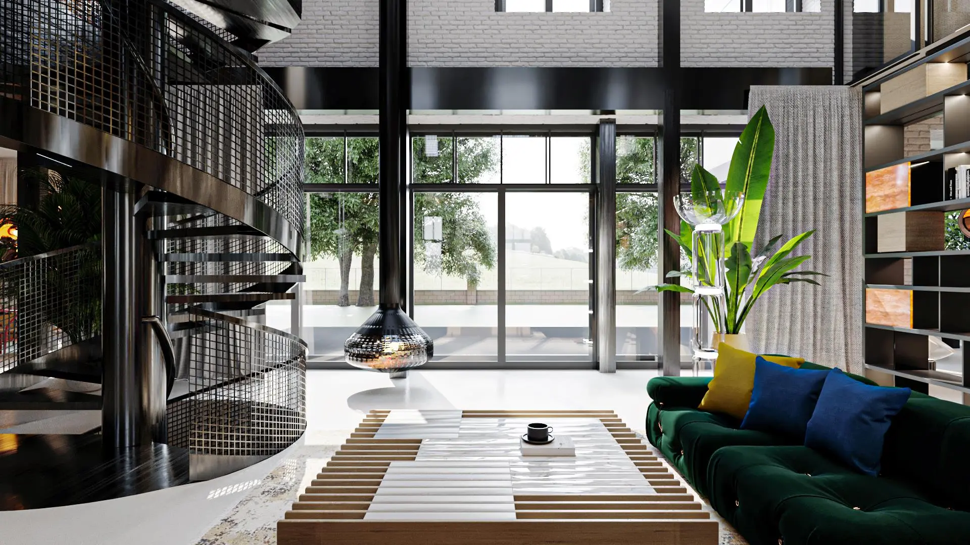 Tło aranżacji, czyli beton i szara cegła, stanowi solidne fundamenty estetycznego wnętrza. Te surowe elementy zostały jednak odpowiednio ocieplone poprzez zastosowanie ryflowanego drewna. To drewno nadaje wnętrzom przytulności i harmonii, tworząc kontrast między nowoczesnym, industrialnym charakterem a przytulnym, naturalnym elementem.
