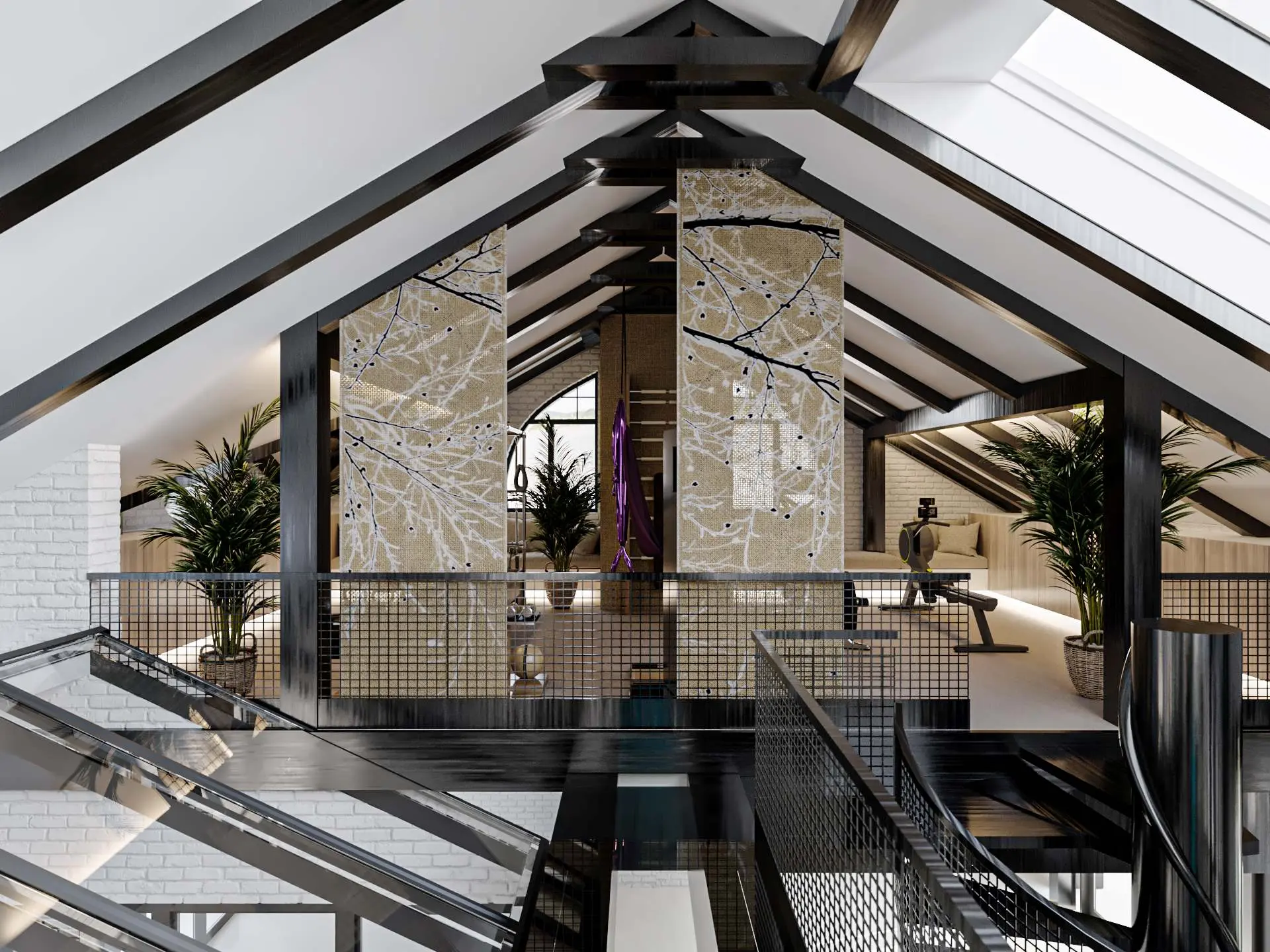 W projektowaniu tego domu szczególny nacisk położono na stworzenie kilku stref relaksu, które idealnie odpowiadają potrzebom mieszkańców. To miejsce, w którym każdy może znaleźć swój azyl spokoju i odprężenia, dopasowany do własnych upodobań i preferencji. Dodatkowo, w domu znajduje się również siłownia.