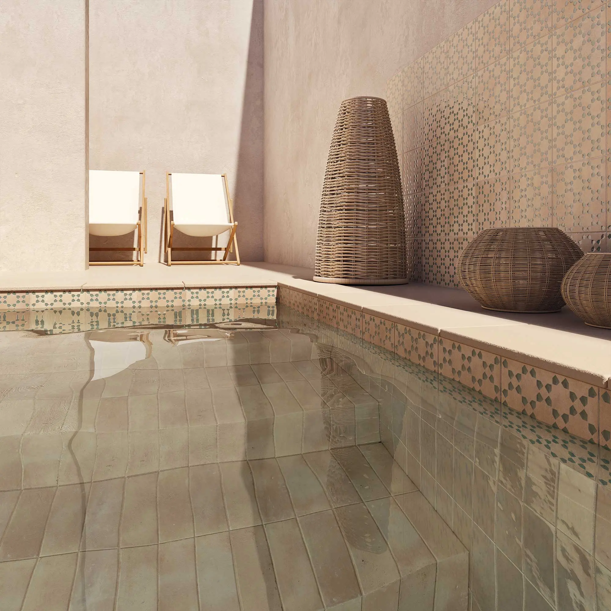 Wśród łazienkowych hitów nadal będą zauważalne wpływy architektury wschodniej nawiązujące do szkliwionych płytek zellige. Cenione są przede wszystkim za niedoskonałość, intensywną kolorystykę i błyszczącą powierzchnię. Stanowią wyrazisty trend przełamujący sterylność i monochromatyczność pokojów kąpielowych.