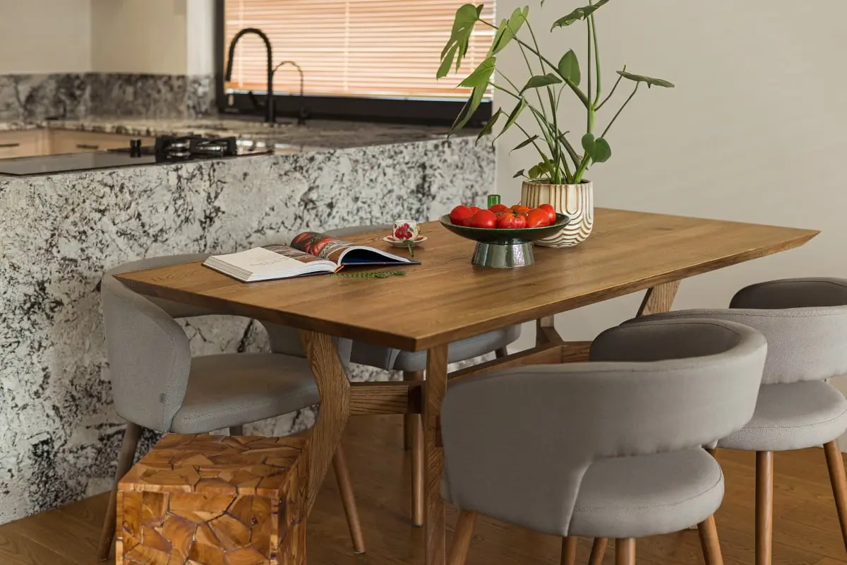 Wyspa, stół w kuchni z płytek wielkoformatowych – top projekty!