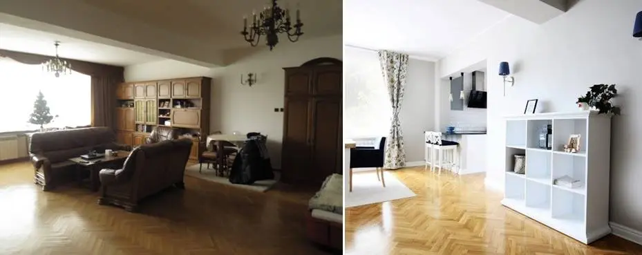Totalna metamorfoza salonu. Zmiana kolorystyki ścian, usytuowania lamp, mebli, dekoracji okiennych i dodatków. Zupełnie nowe wnętrze!