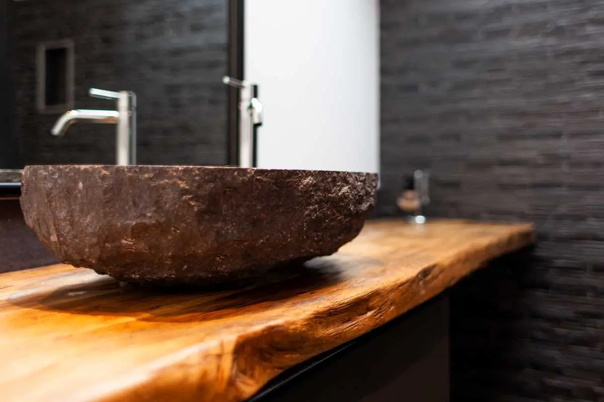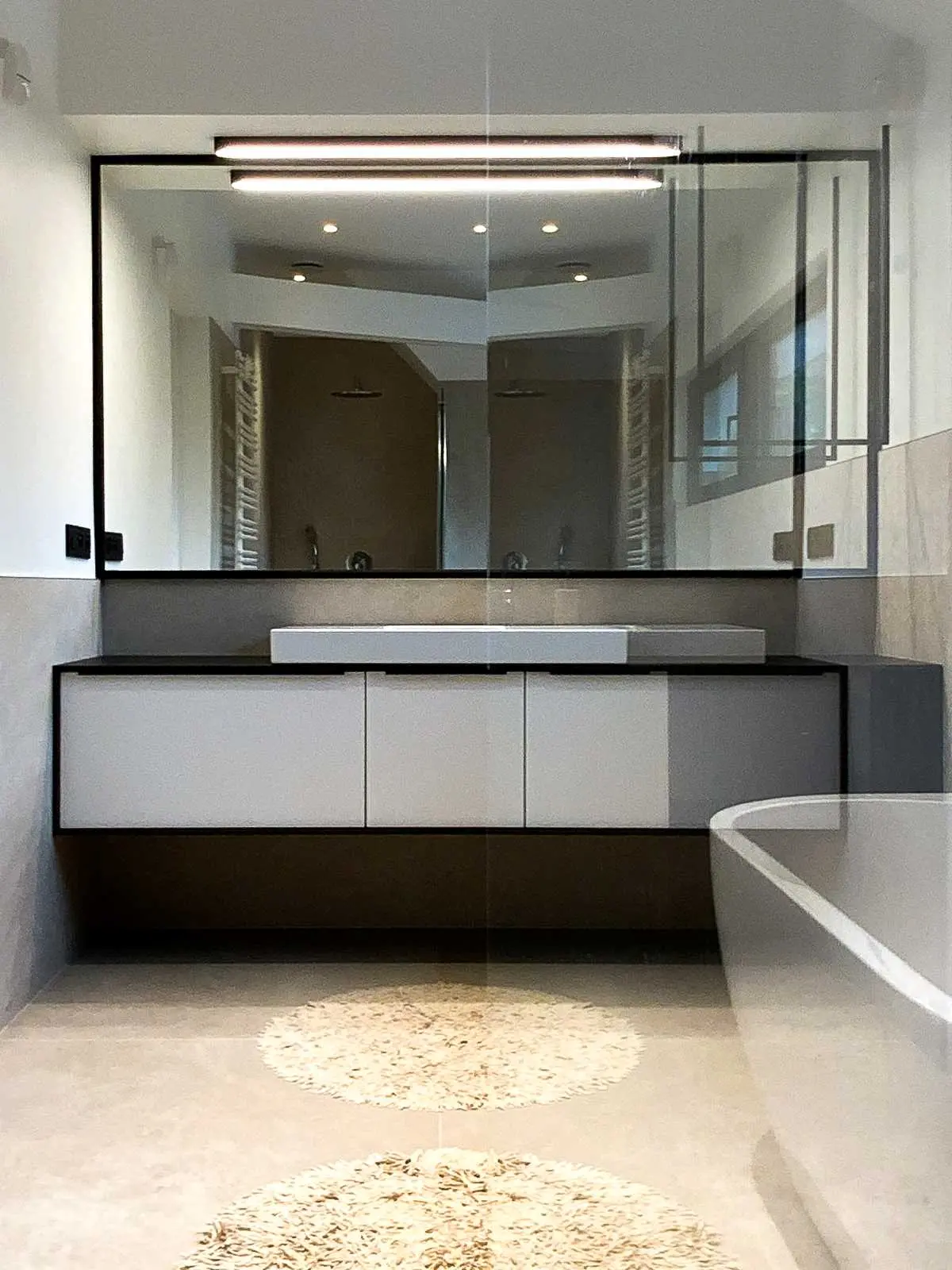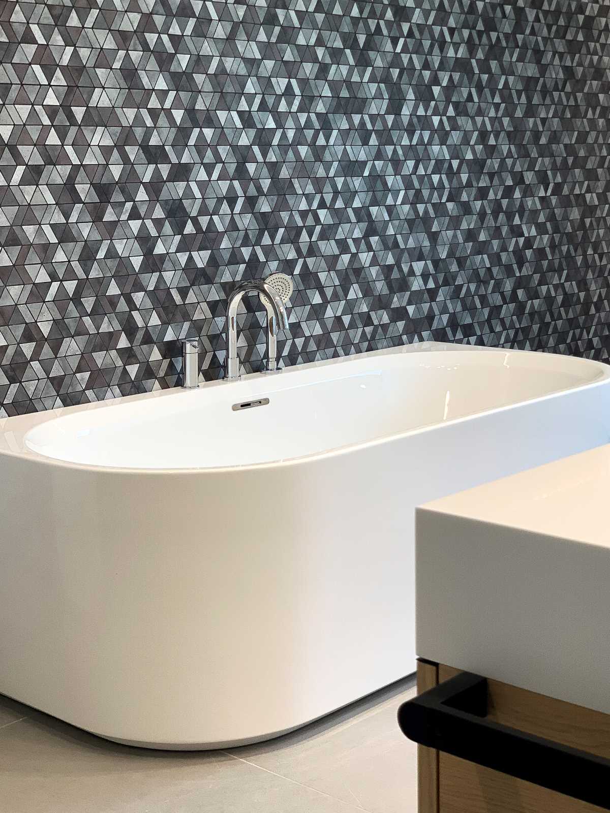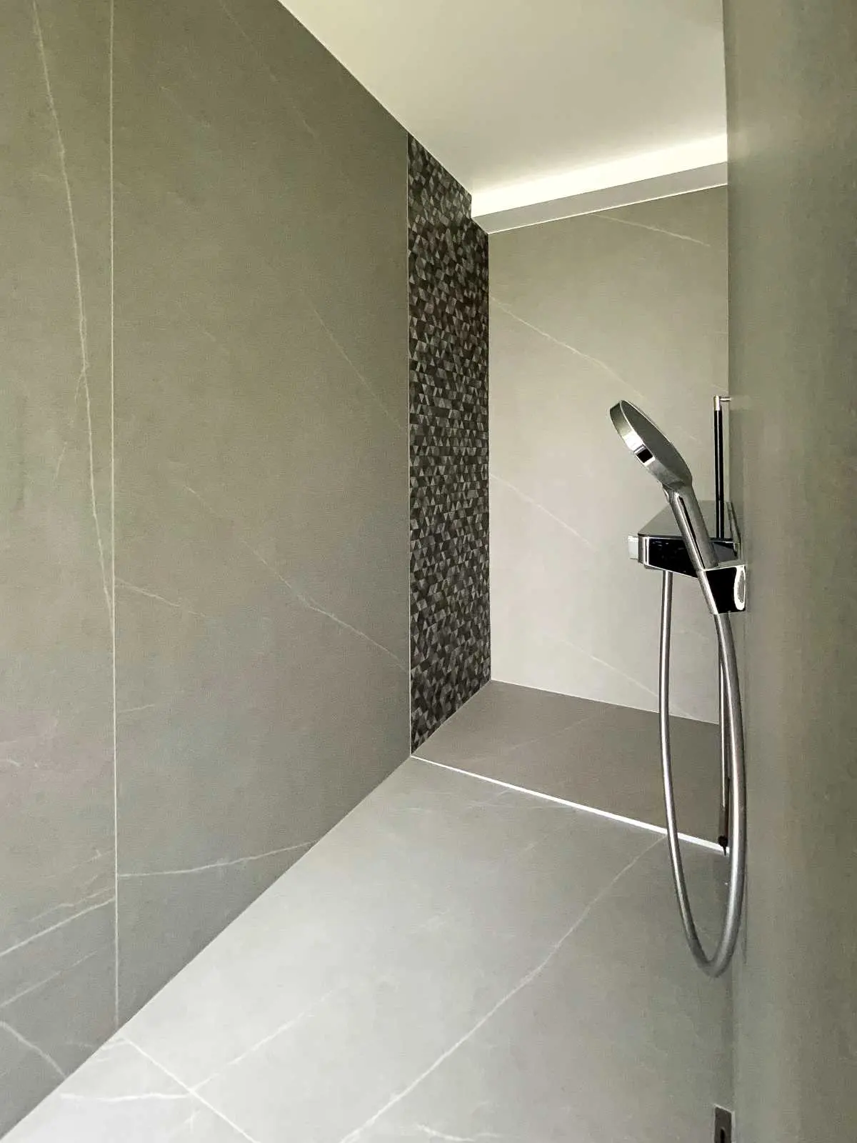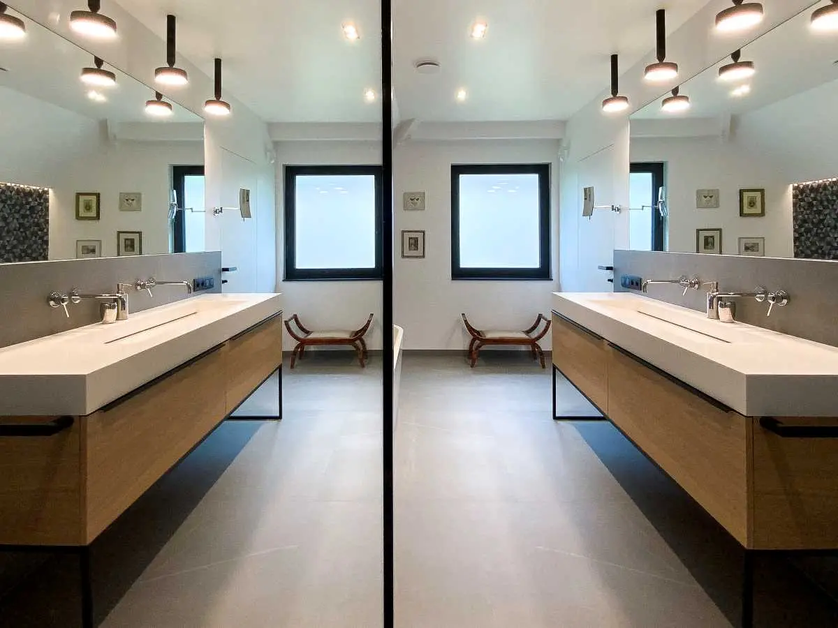 4 łazienki, każda inna lecz przez swój minimalistyczny styl tworzą spójną całość z wnętrzem. Dominują szarości, naturalne kolory, kamień i przede wszystkim najwyższej jakości materiały z górnej półki. Odnajdziemy tu ciekawą ceramikę Antonio Lupi, wyjątkowy design płyt Porcelanosa, L`Antic oraz Wow Design.