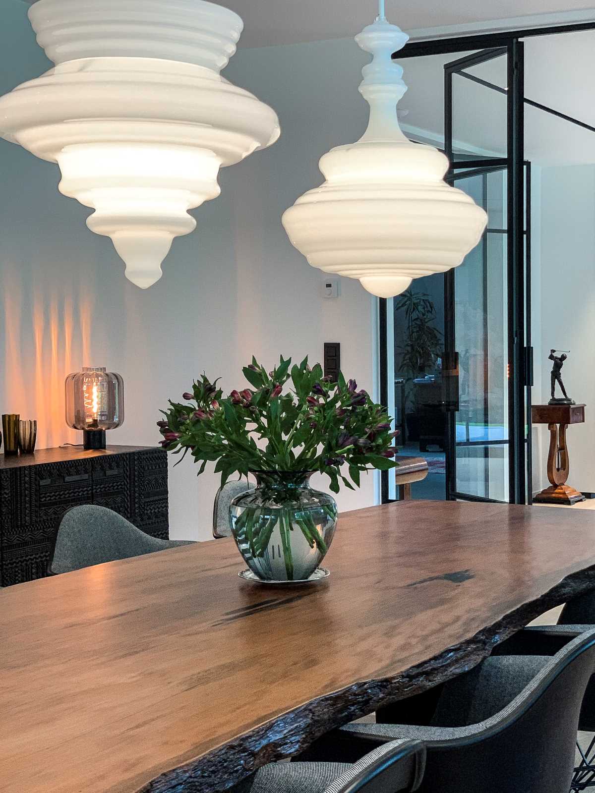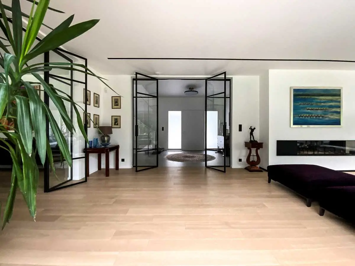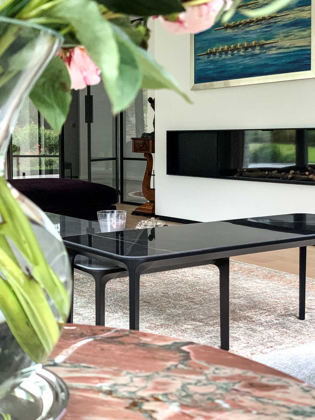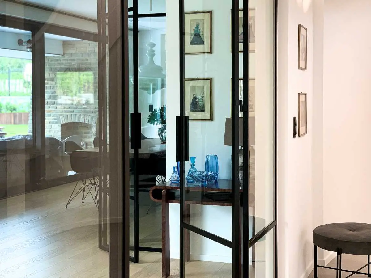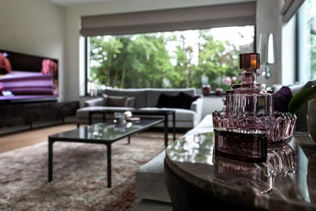 Sercem domu jest salon z dużymi przeszkleniami, przez które natura z zewnątrz została zaproszona do wnętrza. Każdy szczegół aranżacji domu został dokładnie dopracowany a otaczająca cały dom sztuka wprowadza nas w dobry nastrój.