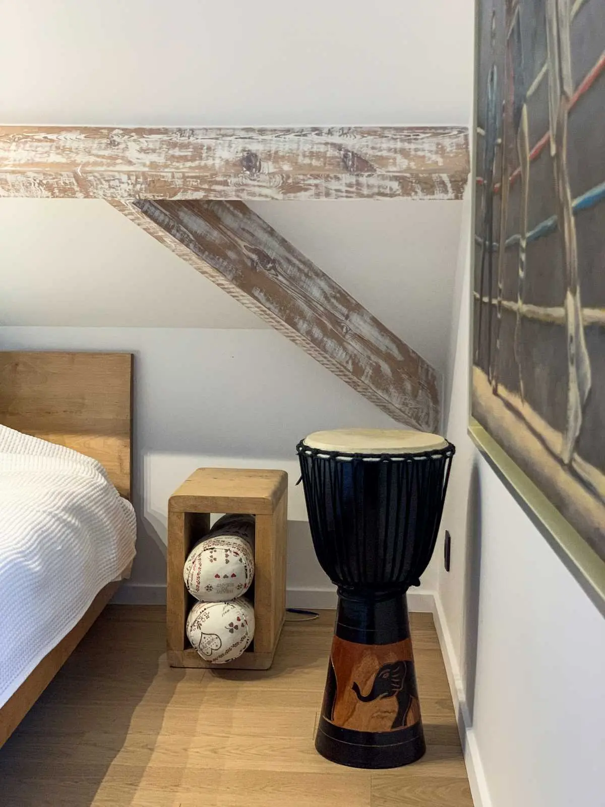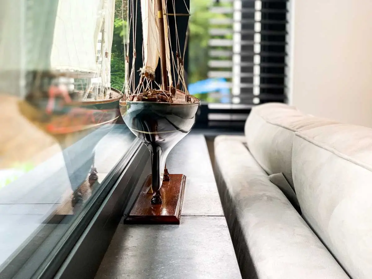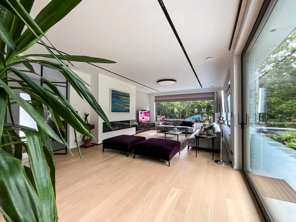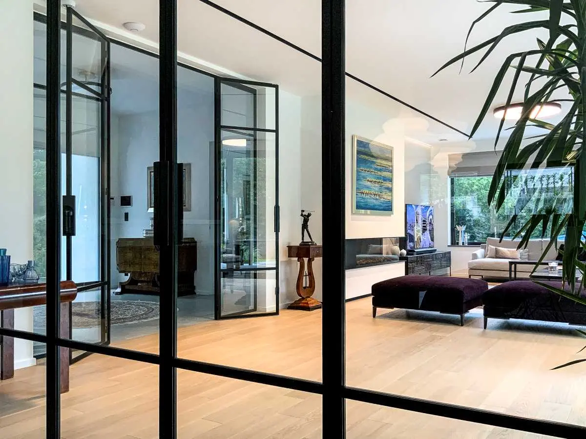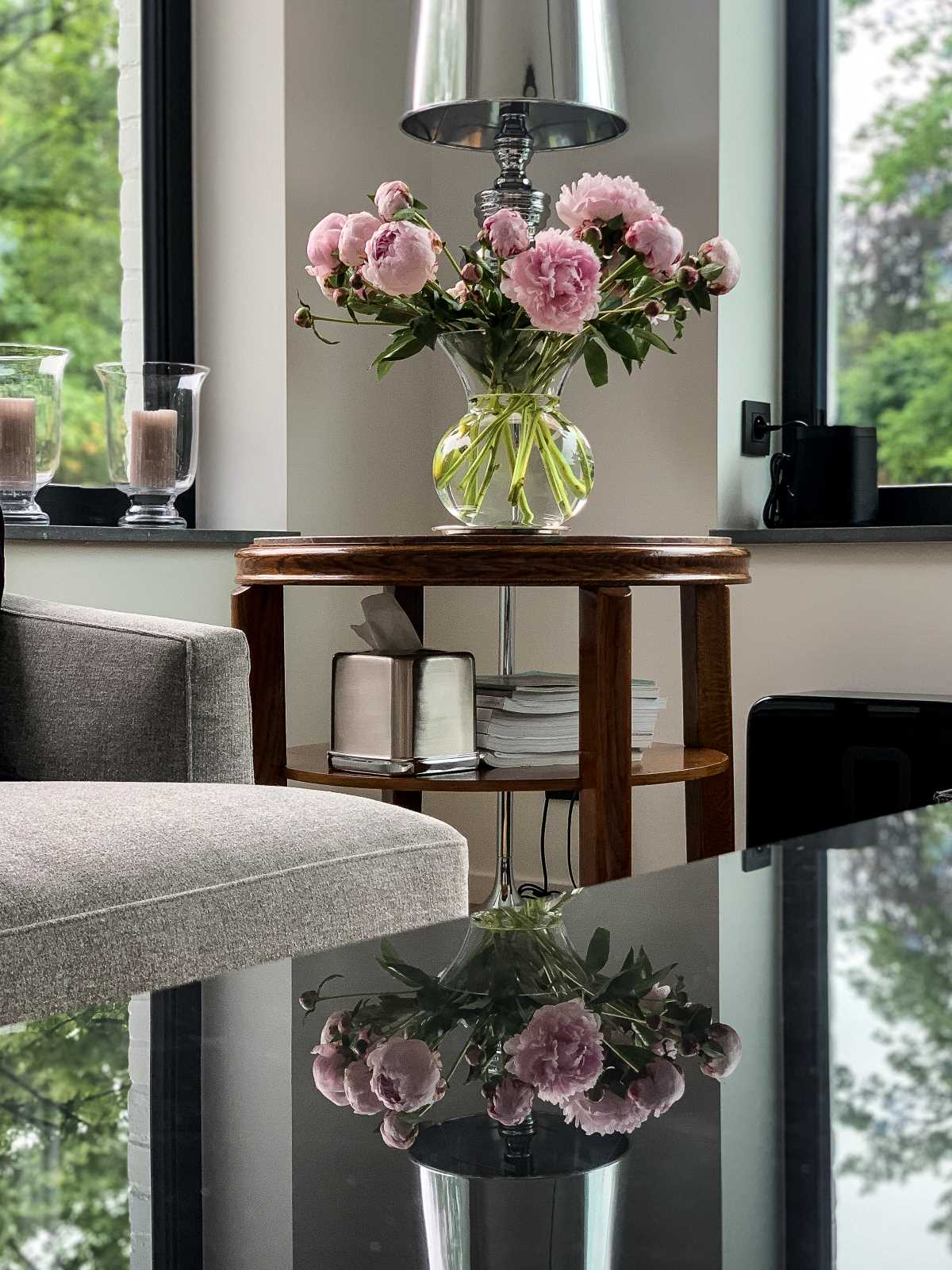 Sercem domu jest salon z dużymi przeszkleniami, przez które natura z zewnątrz została zaproszona do wnętrza. Każdy szczegół aranżacji domu został dokładnie dopracowany a otaczająca cały dom sztuka wprowadza nas w dobry nastrój.