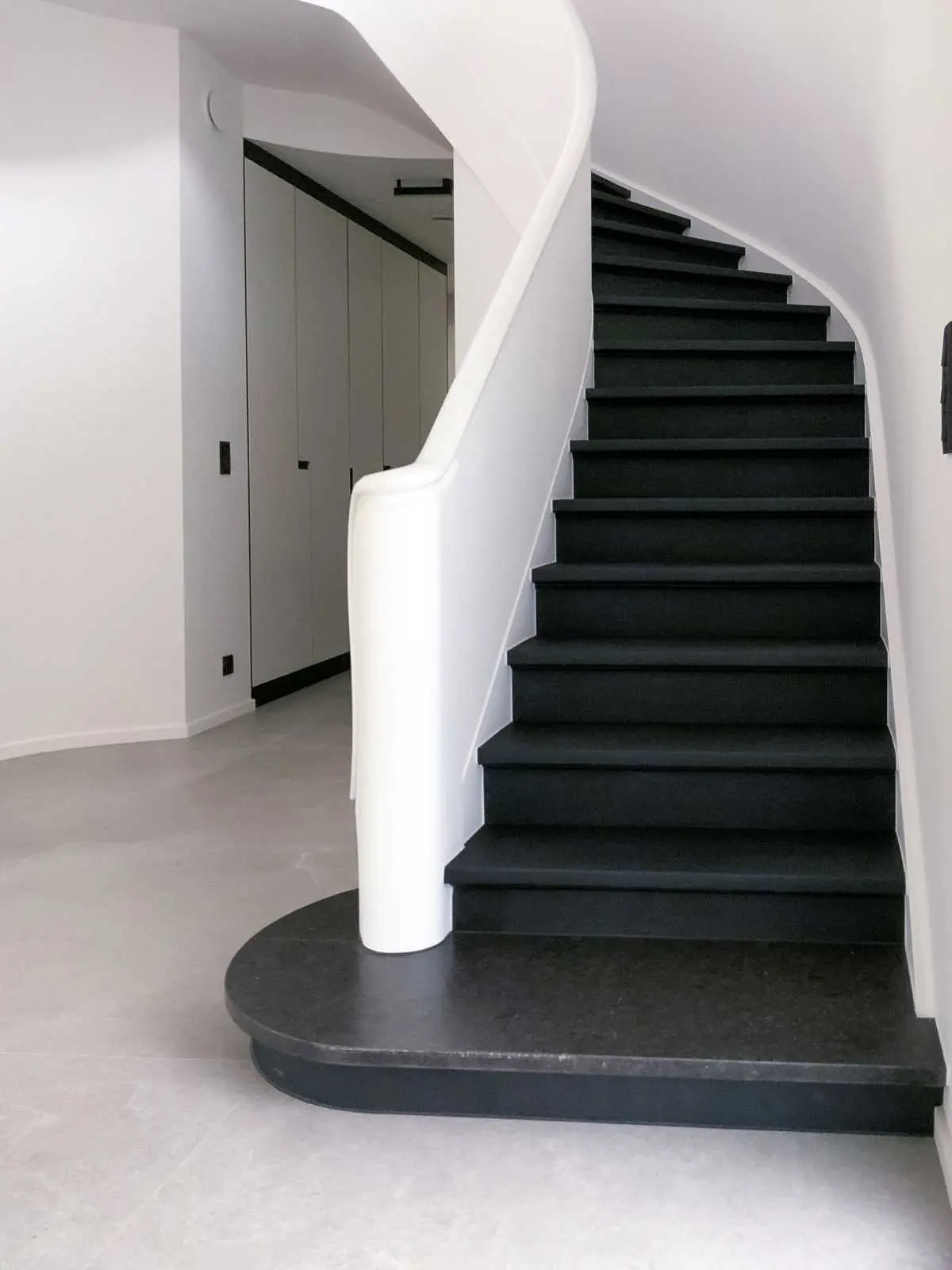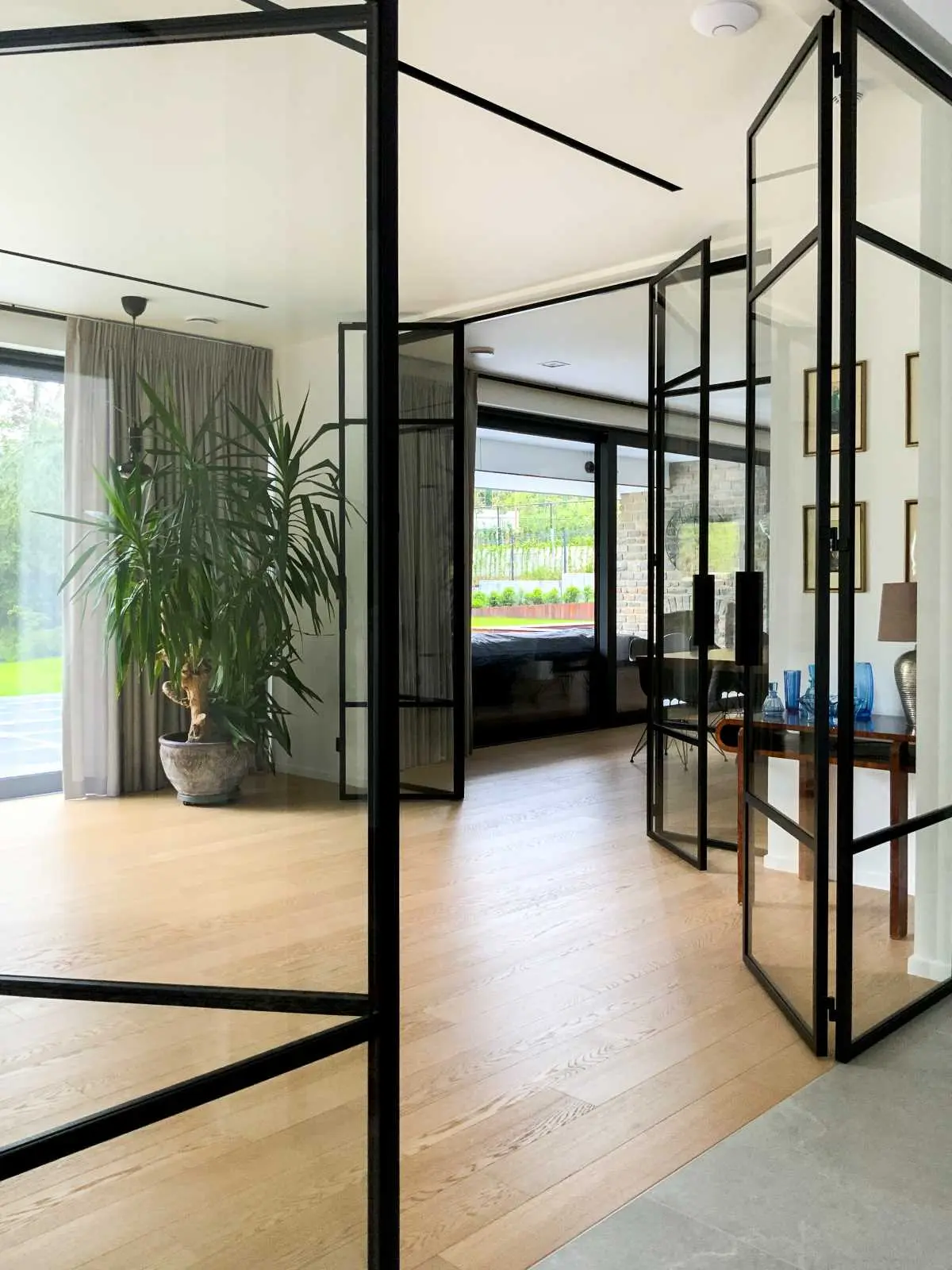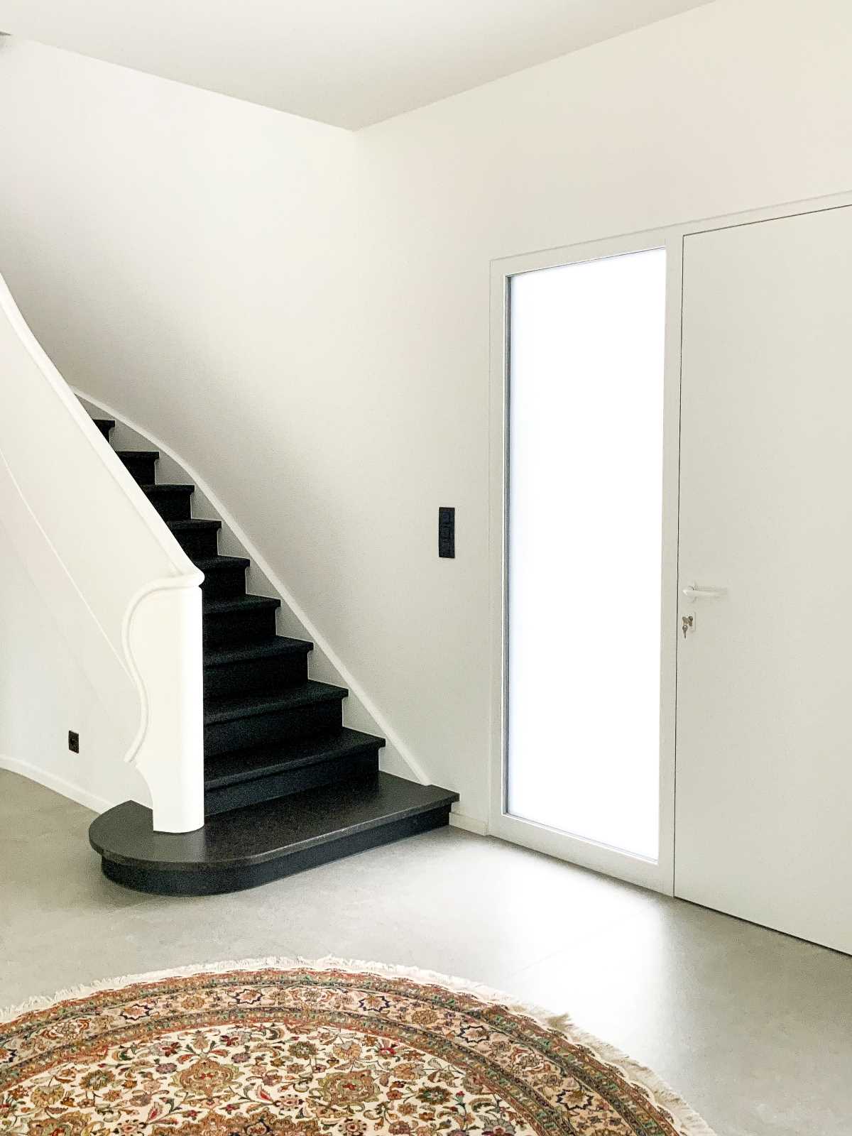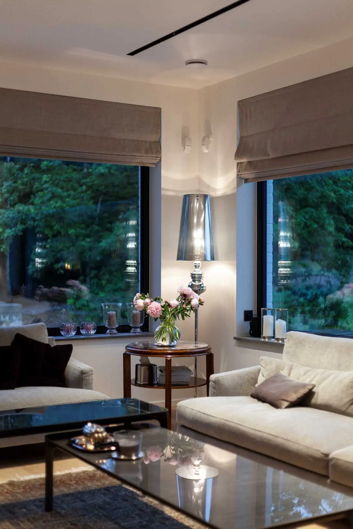 Klientom zależało aby wnętrze było minimalistyczne, ale też przytulne zarazem. Dla wizualnego ocieplenia domu wybrano drewniane podłogi, pomieszczenia otulone są naturalnymi tkaninami. Dzięki przemyślanemu projektowi, budynek zapewnia mieszkańcom komfort i poczucie domowej przytulności.