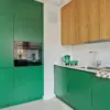 W całym mieszkaniu króluje zieleń i drewno. Architektki postawiły również na sprytny trik umieszczając sporo luster. W ten sposób optycznie powiększyły przestrzeń oraz dodały więcej naturalnego światła. Mieszkanie jest jasne, przestronne i wyjątkowe.