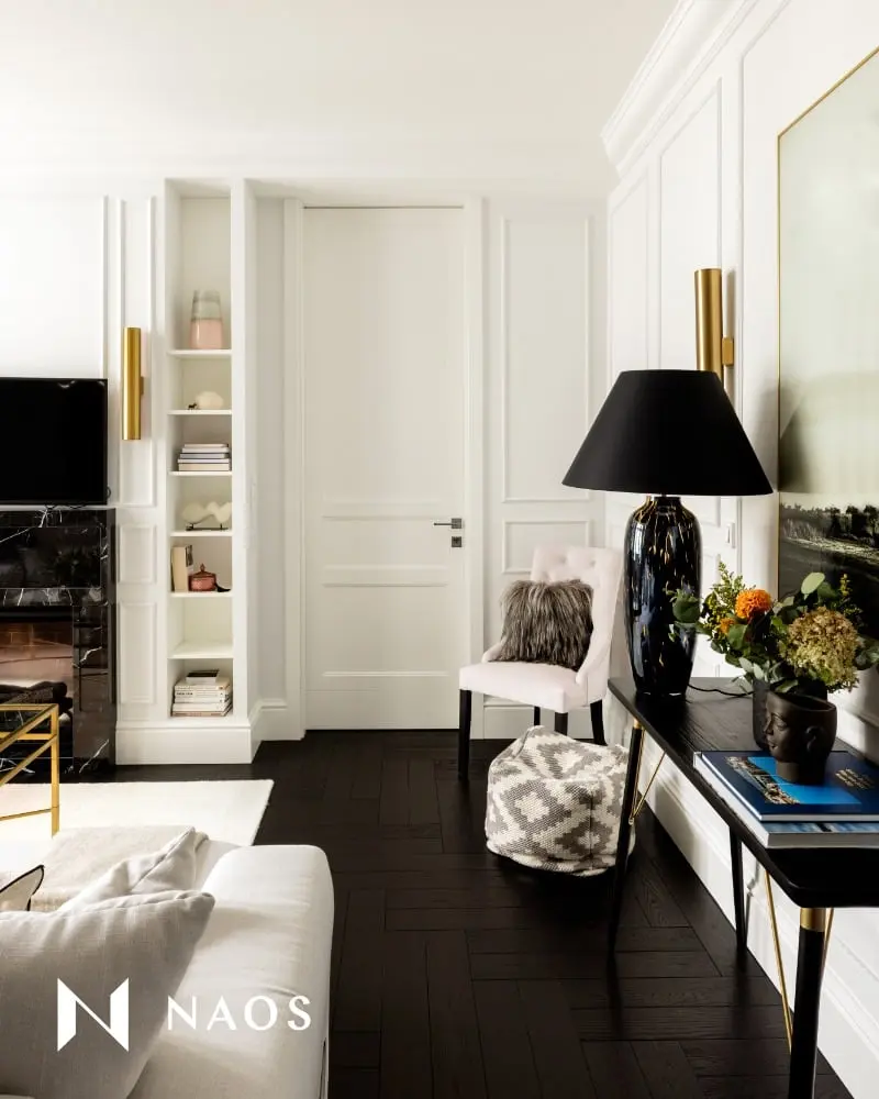 Warszawska kamienica zlokalizowana w centrum miasta przy ul. Noakowskiego, skrywa w pięknym klasycznym stylu mieszkanie. Za projekt odpowiada pracownia