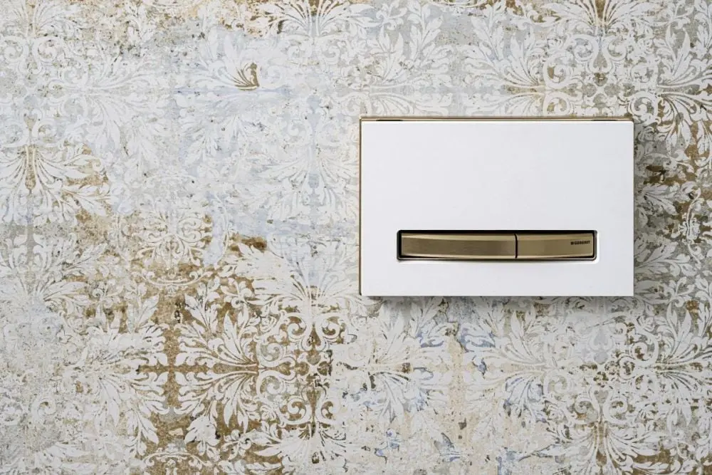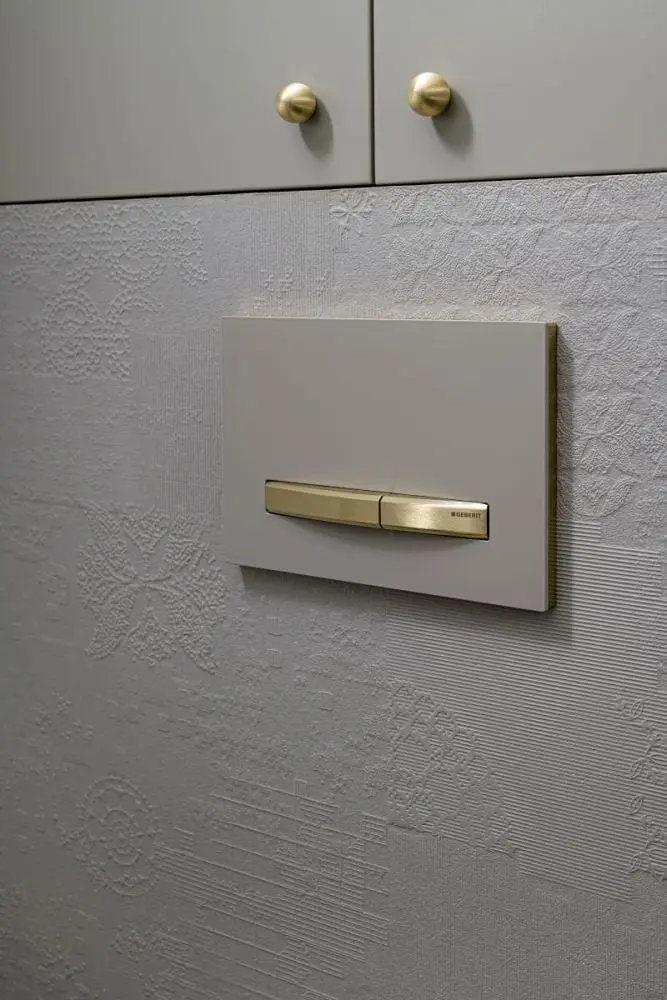 Jak podkreśla sama architektka, jednym z największych atutów całego projektu jest bowiem szczególna dbałość o detale aranżacyjne. W przestrzeni kąpielowej przejawia się ona poprzez dobór wyposażenia. Aby podkreślić urok i subtelny charakter łazienki, Agnieszka wybrała m.in. produkty z oferty Geberit. Stąd obok miski WC i bidetu z serii Geberit ONE, zamontowanych na stelażach podtynkowych Duofix, znalazł się tu przycisk Sigma50. To właśnie on, dzięki swemu designowi oraz możliwości personalizacji, przyciąga wzrok w każdej z łazienek.