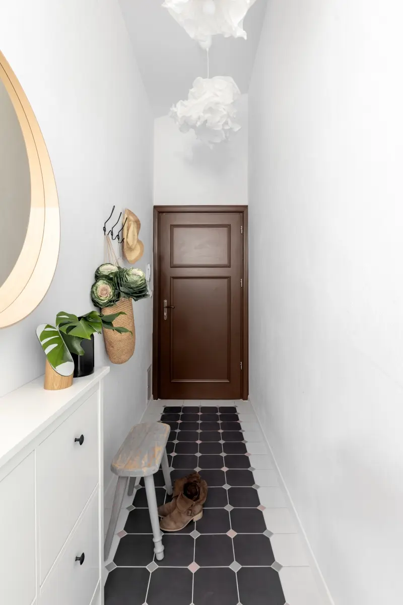 Bardzo mały metraż, nie przeszkodził architektom na stworzenie komfortowego i funkcjonalnego mieszkania. Minimalistyczny styl, przeplata się tu z nostalgią wobec historii budynku. Jasne barwy inspirowane naturą, optycznie powiększają wnętrze. Zielone rośliny stanowią żywą dekorację i wprowadzają atmosferę relaksu. Wszystko jest na swoim miejscu.