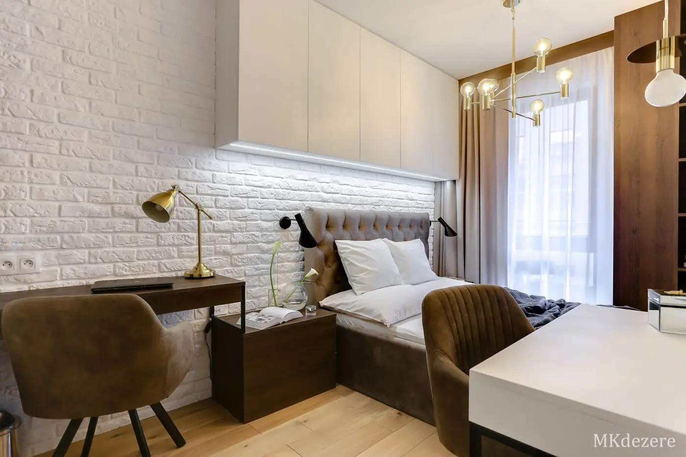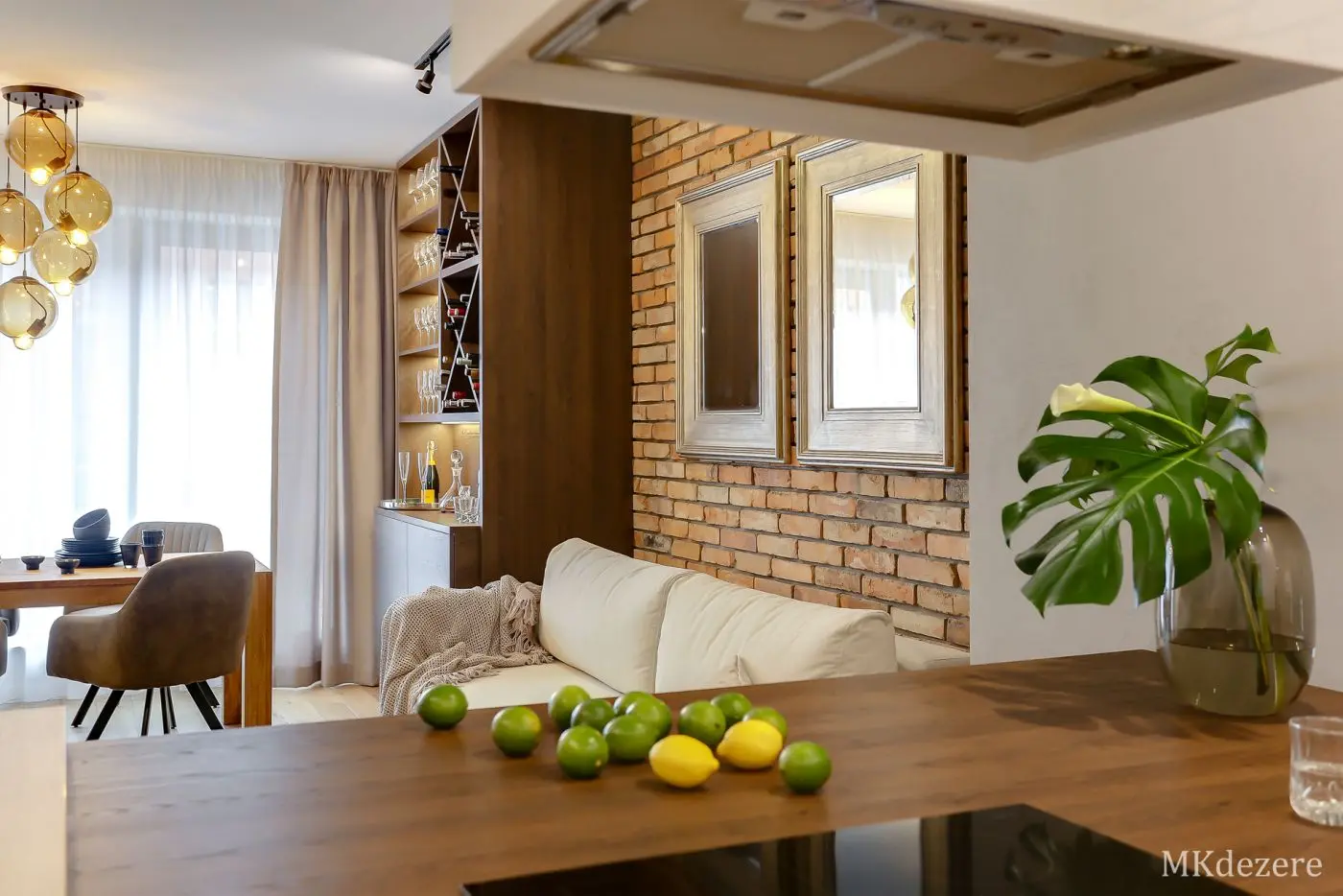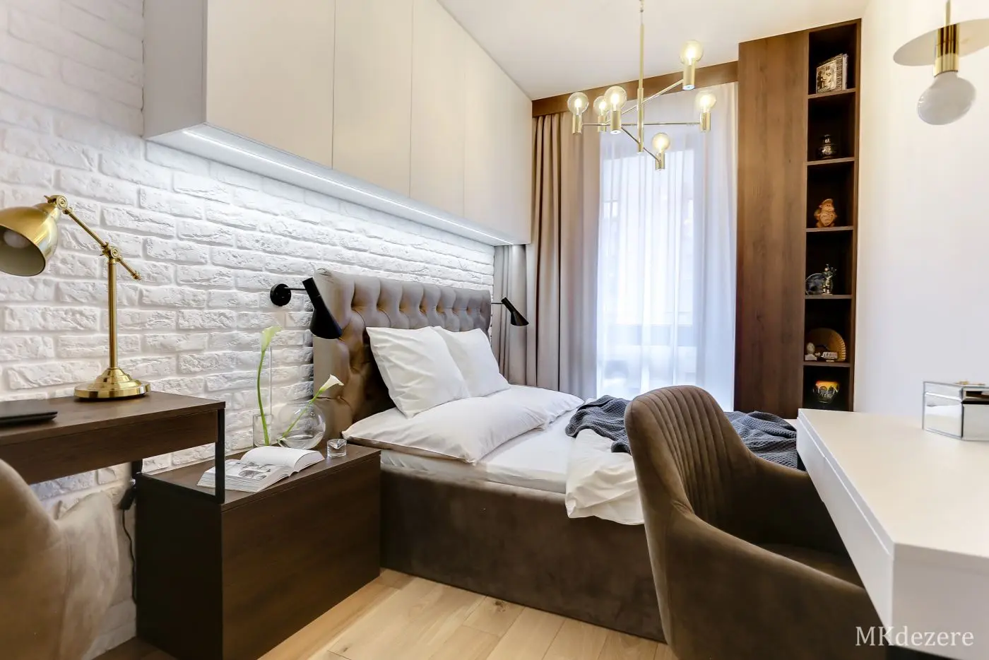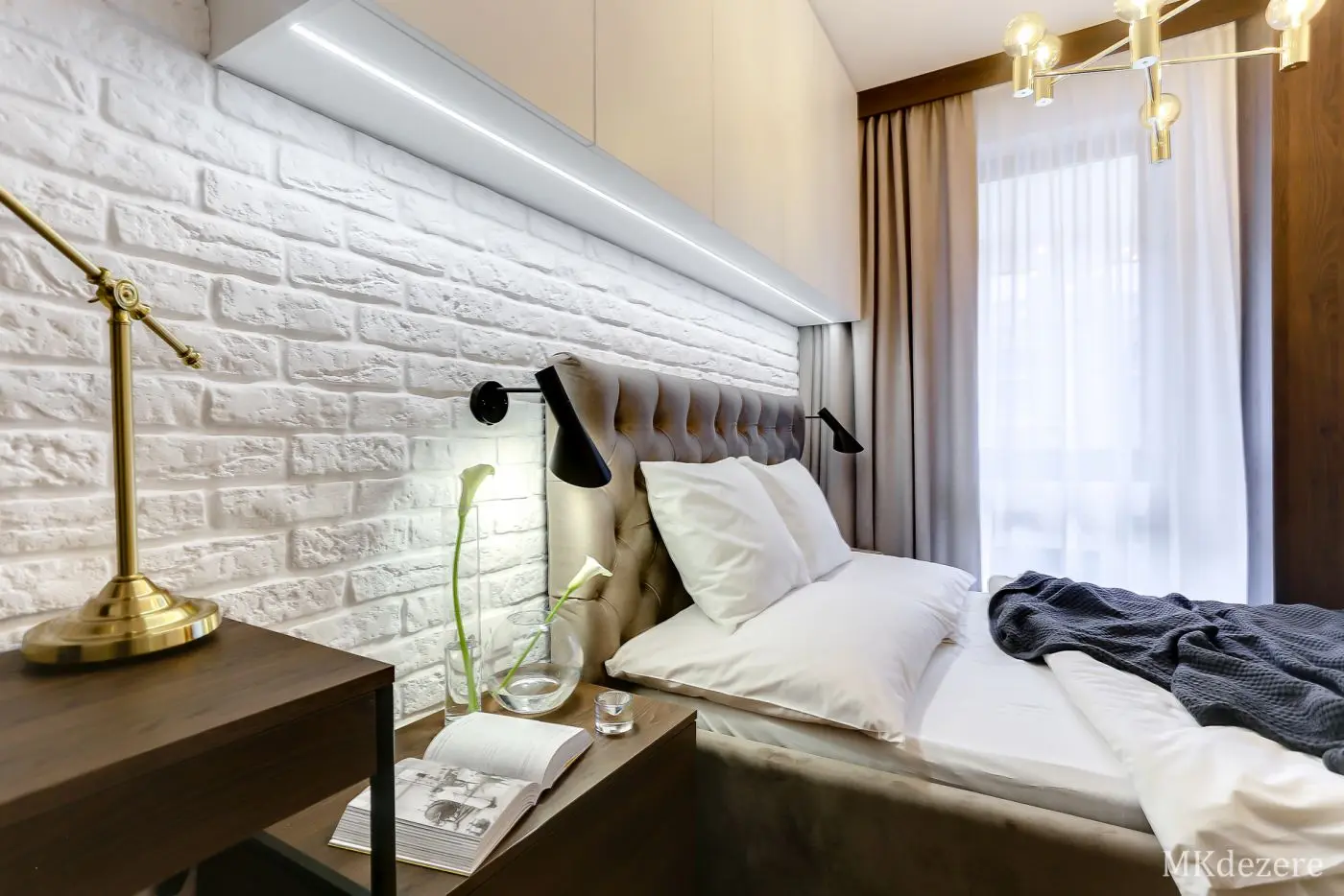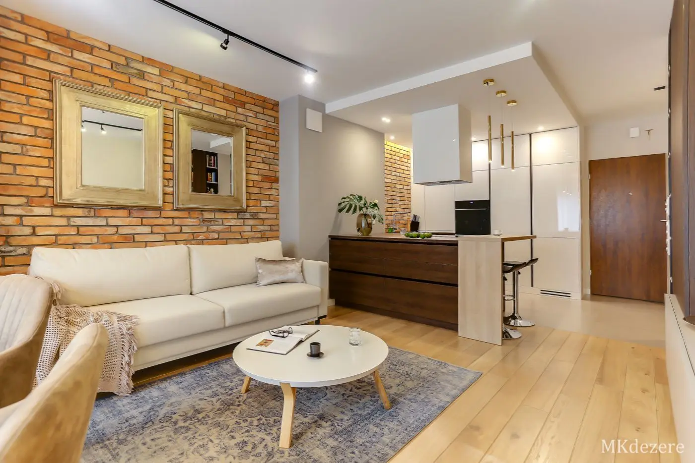 Głównym założeniem przy aranżacji tego mieszkania w bloku było stworzenie przytulnego, ciepłego wnętrza jednak z zachowaniem nowoczesnego charakteru. Mieszkanie było projektowane dla młodego małżeństwa, którzy kupili pierwsze mieszkanie. Blok w którym się znajduje się mieszkanie pokryty jest cegłą. Klienci chcieli także we wnętrzu nawiązać do tego materiału. Architektka z pracowni MKDEZERE Magda Knappe postawiła na bardzo ciekawe rozwiązania.