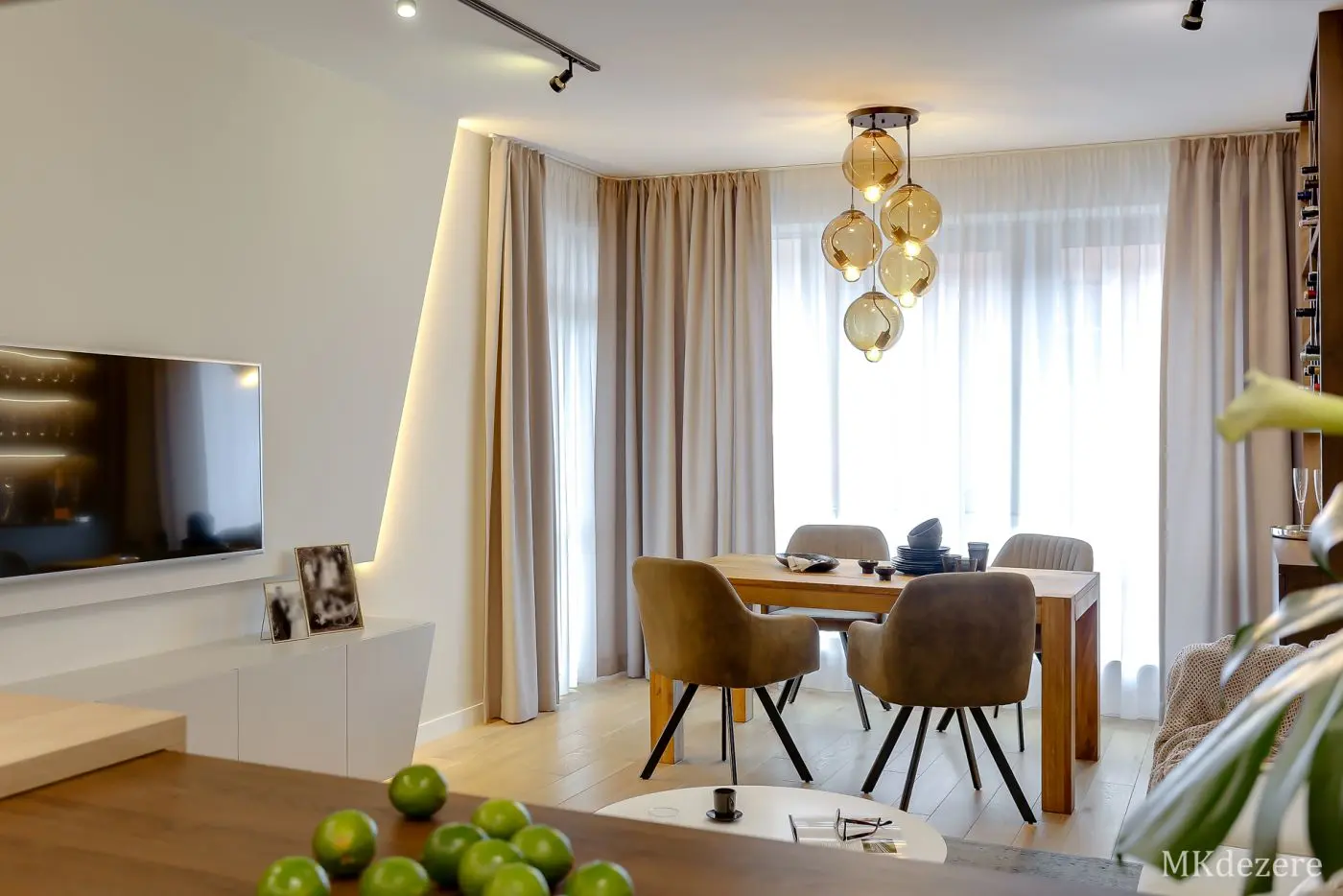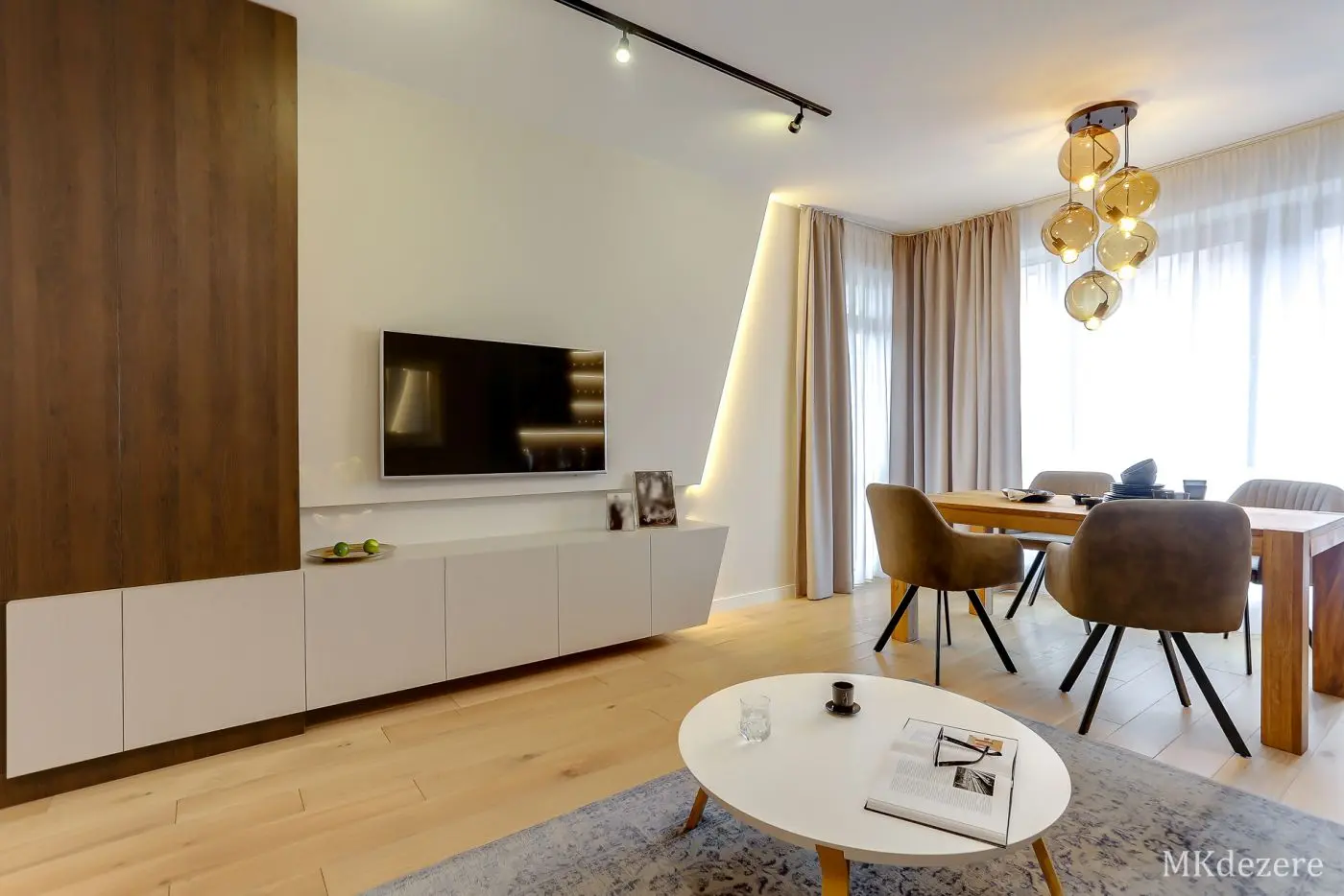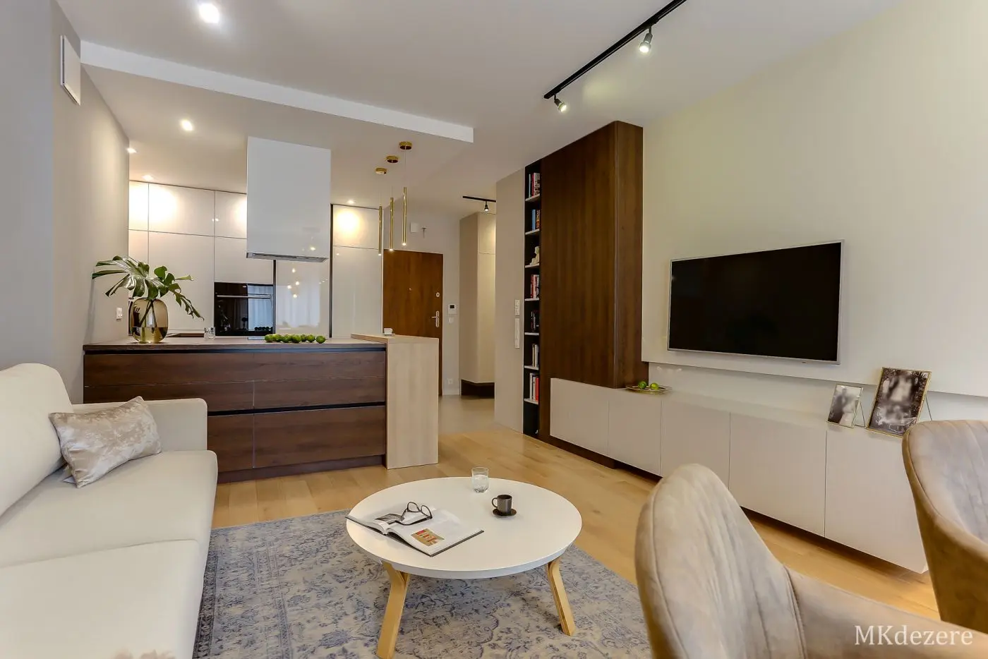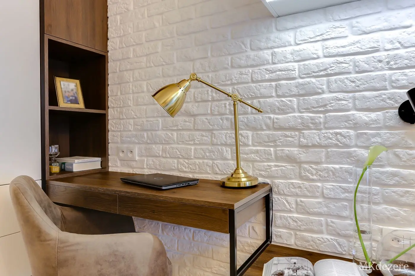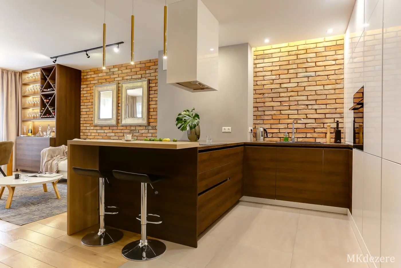 Głównym założeniem przy aranżacji tego mieszkania w bloku było stworzenie przytulnego, ciepłego wnętrza jednak z zachowaniem nowoczesnego charakteru. Mieszkanie było projektowane dla młodego małżeństwa, którzy kupili pierwsze mieszkanie. Blok w którym się znajduje się mieszkanie pokryty jest cegłą. Klienci chcieli także we wnętrzu nawiązać do tego materiału. Architektka z pracowni MKDEZERE Magda Knappe postawiła na bardzo ciekawe rozwiązania.