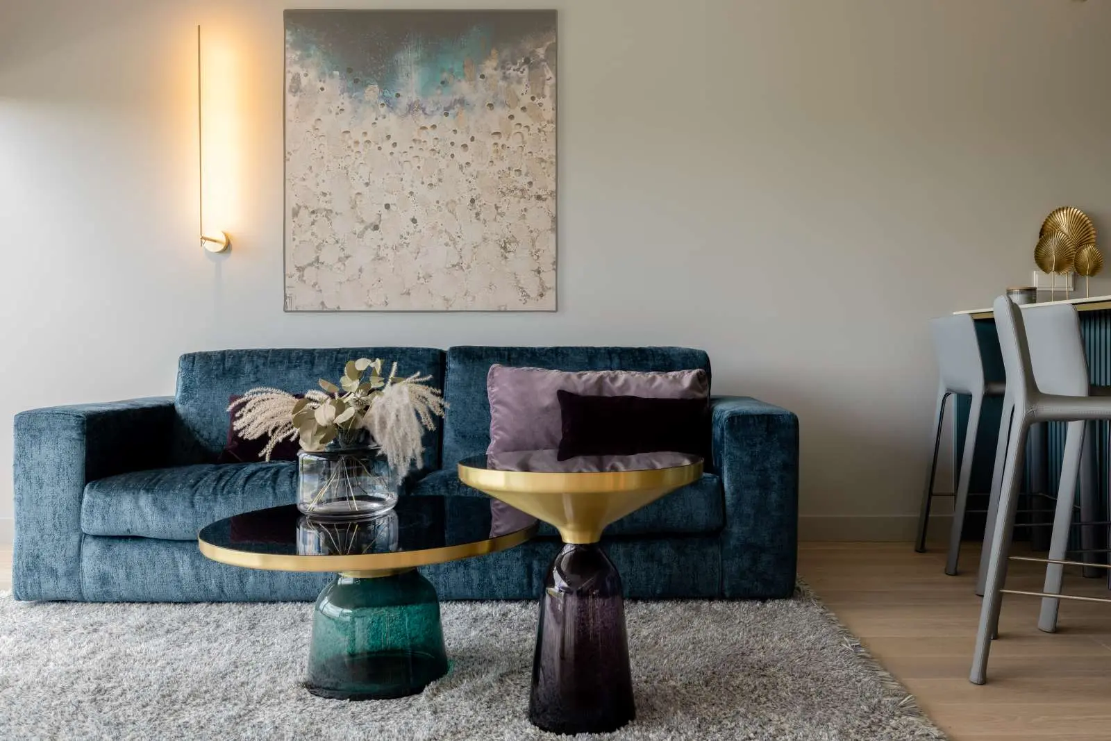 Wnętrze świnoujskiego apartamentu zwraca uwagę bogatą, choć doskonale wyważoną i harmonijną paletą barw – przede wszystkim błękitów i zieleni w najróżniejszych odcieniach. – Właściciele od początku kładli na tę kwestię duży nacisk. Skoro jest to rodzinny apartament na wakacje nad morzem, prosili, by wnętrza były utrzymane w estetyce morskiej – wspomina Diana Michalska. Rzut oka na zdjęcia pozwala się przekonać, że zarówno autorzy projektu, jak i właściciele tego pięknego mieszkania sięgnęli daleko poza krąg obiegowych skojarzeń.
