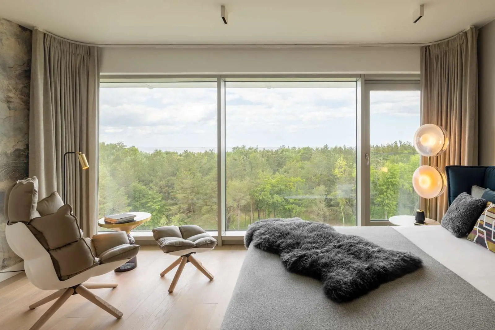 – Apartament zyskał oczywiście na metrażu, ale nie tylko. Wielką wartością okazał się też bezpośredni dostęp do wielkiego przeszklenia w nowo powstałej sypialni. Ponad czubkami drzew rozpościera się stąd widok na Bałtyk i kursujące nocą podświetlone statki. Taka perspektywa widziana przed snem inspiruje do marzeń o kolejnych podróżach – dodaje z uśmiechem Diana Michalska.