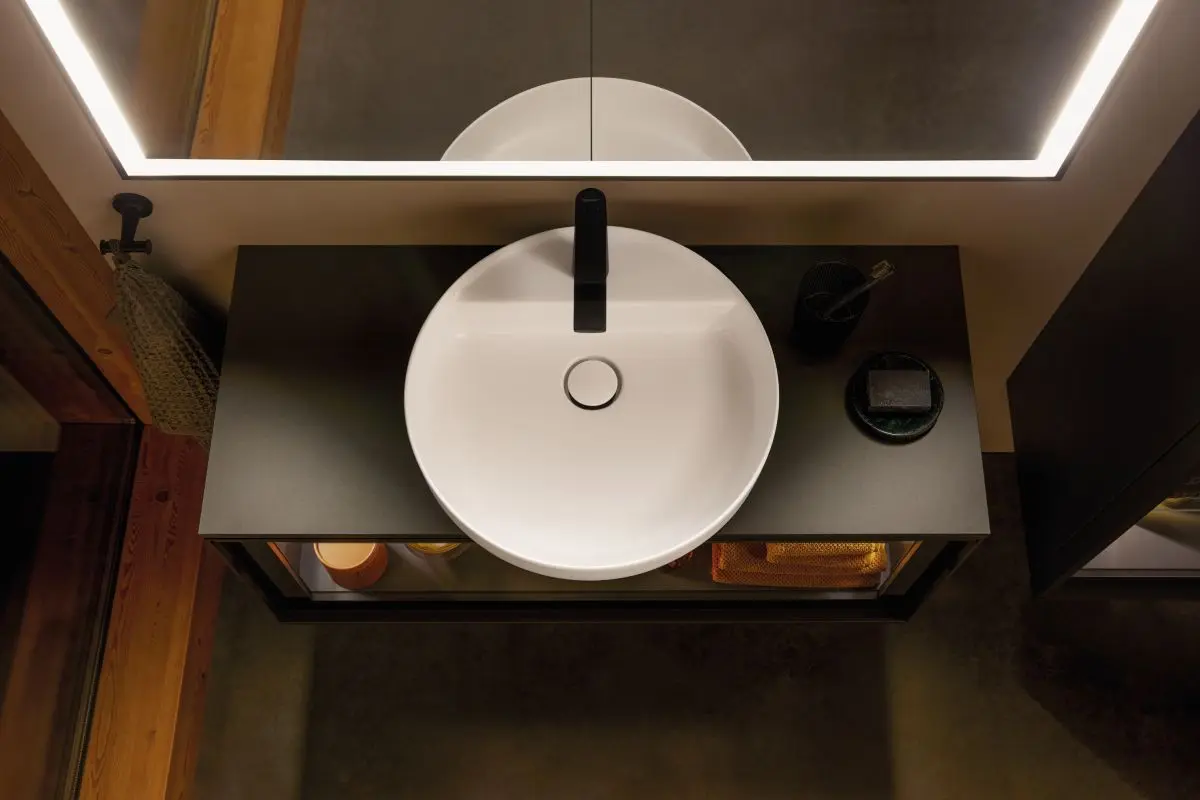 Kombinacje takie jak okrągła umywalka nablatowa z meblami łazienkowymi o prostych liniach łączą to, co najlepsze z obu światów, tworząc ciekawe kontrasty w łazience.