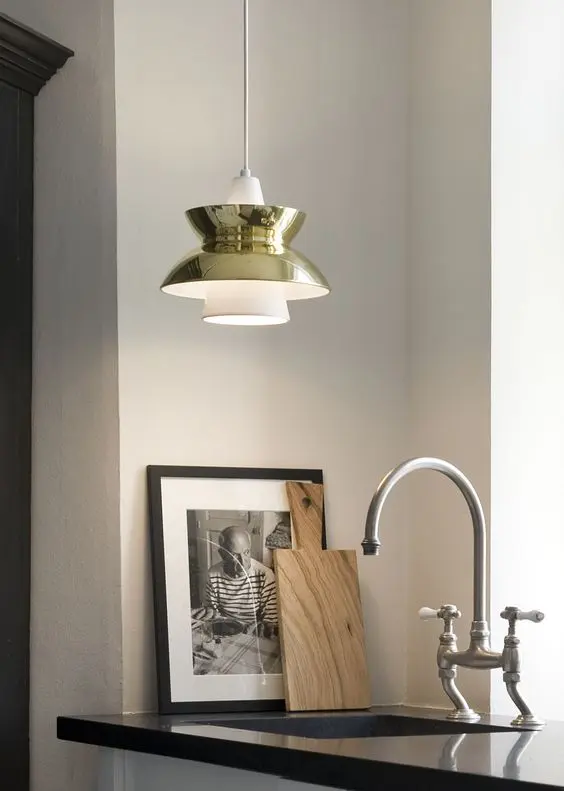 Oprawa zapewnia łagodne i nastrojowe oświetlenie skierowane w dół, dzięki białemu, lakierowanemu wewnątrz stożkowemu reflektorowi. Wnętrze głównego klosza jest oświetlone poprzez otwór w wewnętrznym, stożkowym odbłyśniku. Dostępna w 5 kolorach: Brass, Copper, Polished steel, White, Dark Grey,