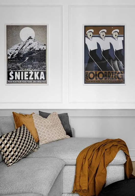 Rezultatem prac, które dziś możemy oglądać na zdjęciach, jest bardzo stylowe wnętrze. Podstawę aranżacji stanowi prawdziwe drewno na podłodze, gdzieniegdzie uzupełnione gresem. Na ścianach pojawiły się sztukaterie, które nawiązują do klimatu paryskich kamienic. O przytulny wystrój dbają przemyślane tekstylia, takie jak chociażby mięsiste zasłony, których zadaniem jest również zaciemnianie i wygłuszanie wnętrza.