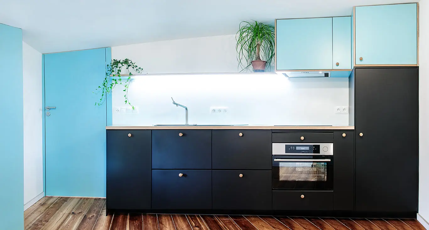 W domu wielorodzinnym znajduję się strych o powierzchni 78 m2, który zaadaptowano na nowoczesne i funkcjonalne mieszkanie oraz studio do pracy. Przestrzeń strychu charakteryzowała się różnymi wysokościami pomieszczeń (niektóre z nich bardzo niskie) oraz zachowanymi pięknymi drewnianymi stropami i podłogą. W miejscach z niskim sufitem zorganizowano część sypialnianą, w wysokich partiach powstały kuchnia, jadalnia i miejsce do pracy.