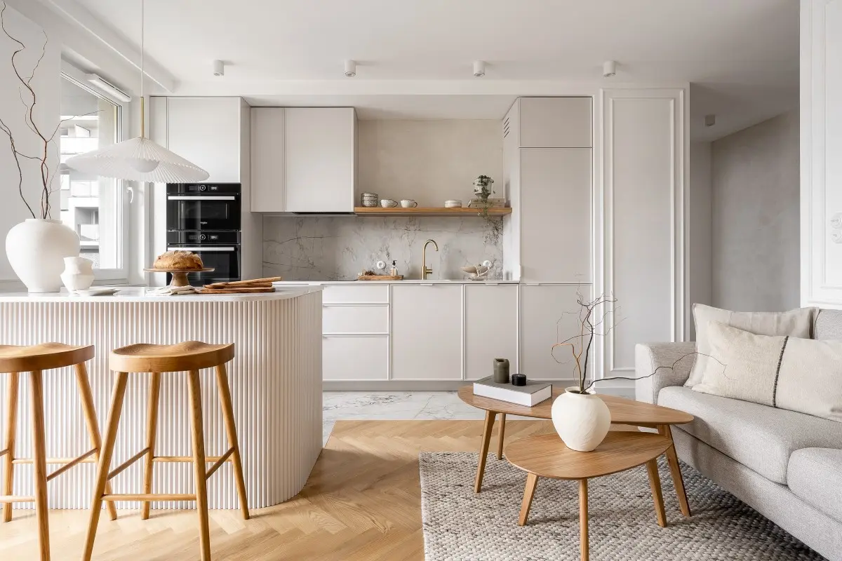 ,,Ze względu na przeznaczenie mieszkania zależało nam, aby było urządzone uniwersalnie i ponadczasowo. Styl japandi to jasne neutralne barwy i naturalne materiały, które będą przyjemne w odbiorze dla każdego, bez względu na płeć czy grupę wiekową. Dzięki temu, że ten dyskretny styl nie przemija, aranżacja nie będzie wymagała zmiany przez lata”.