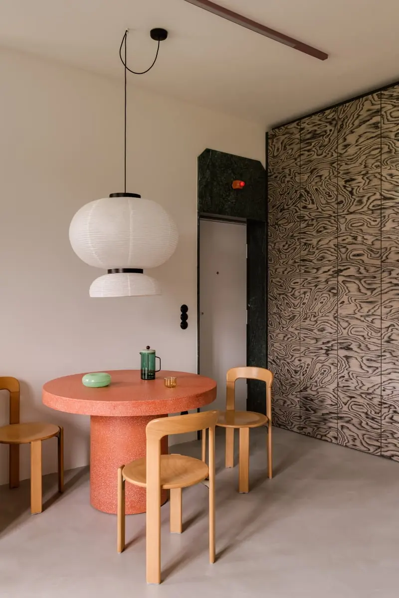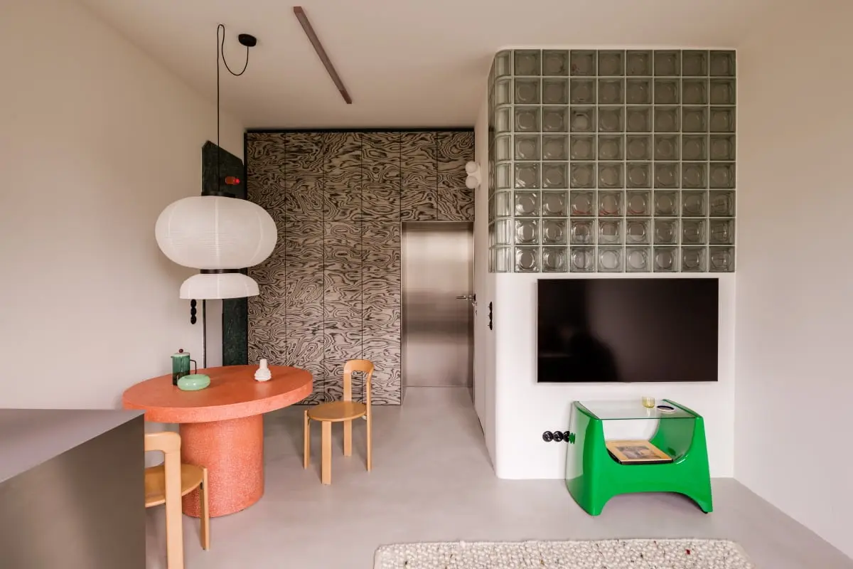 Praskie mieszkanie zaprojektowane przez Mistovia to prawdziwie postmodernistyczny miks odważnych wzorów, mocnych faktur i nieoczywistych kolorów. Projekty młodych polskich marek zgodnie sąsiadują w nim z meblami vintage, klasykami dizajnu i elementami zaprojektowanymi na wymiar. Wszystkie składniki połączone są w zgrabną całość.