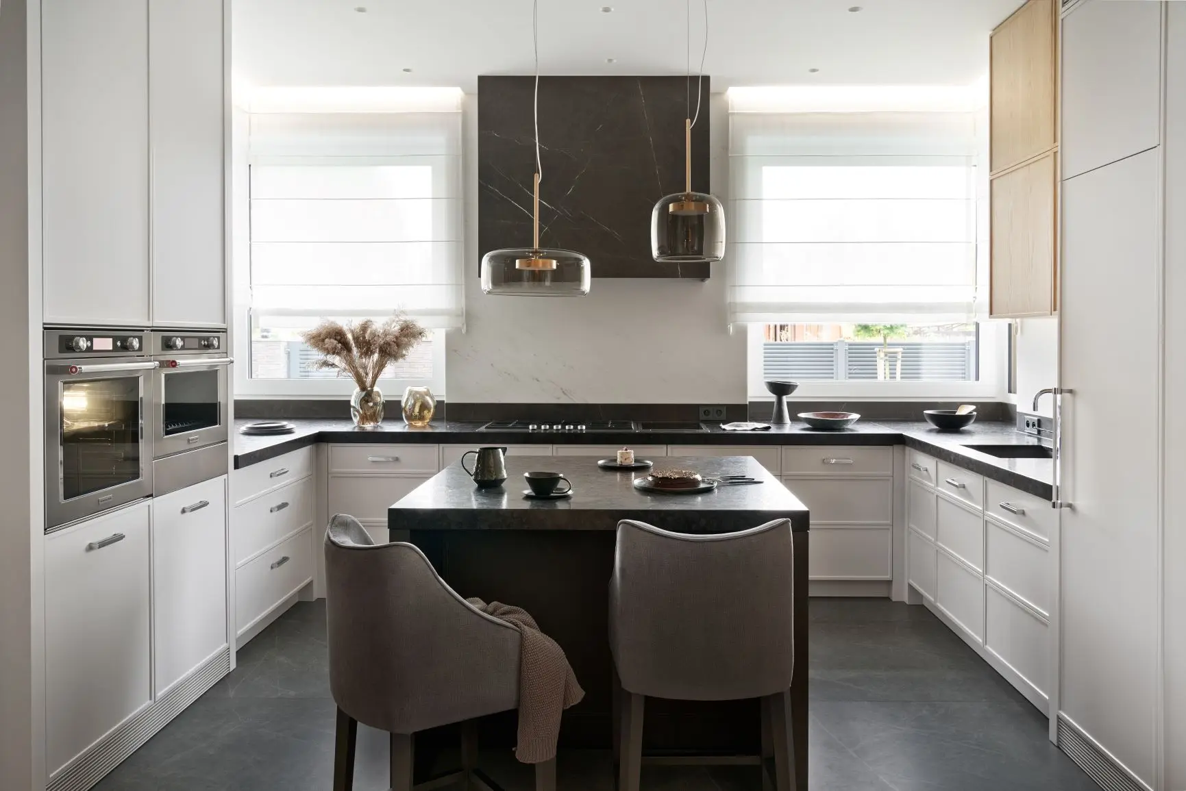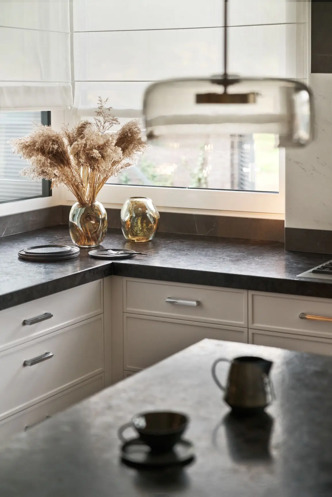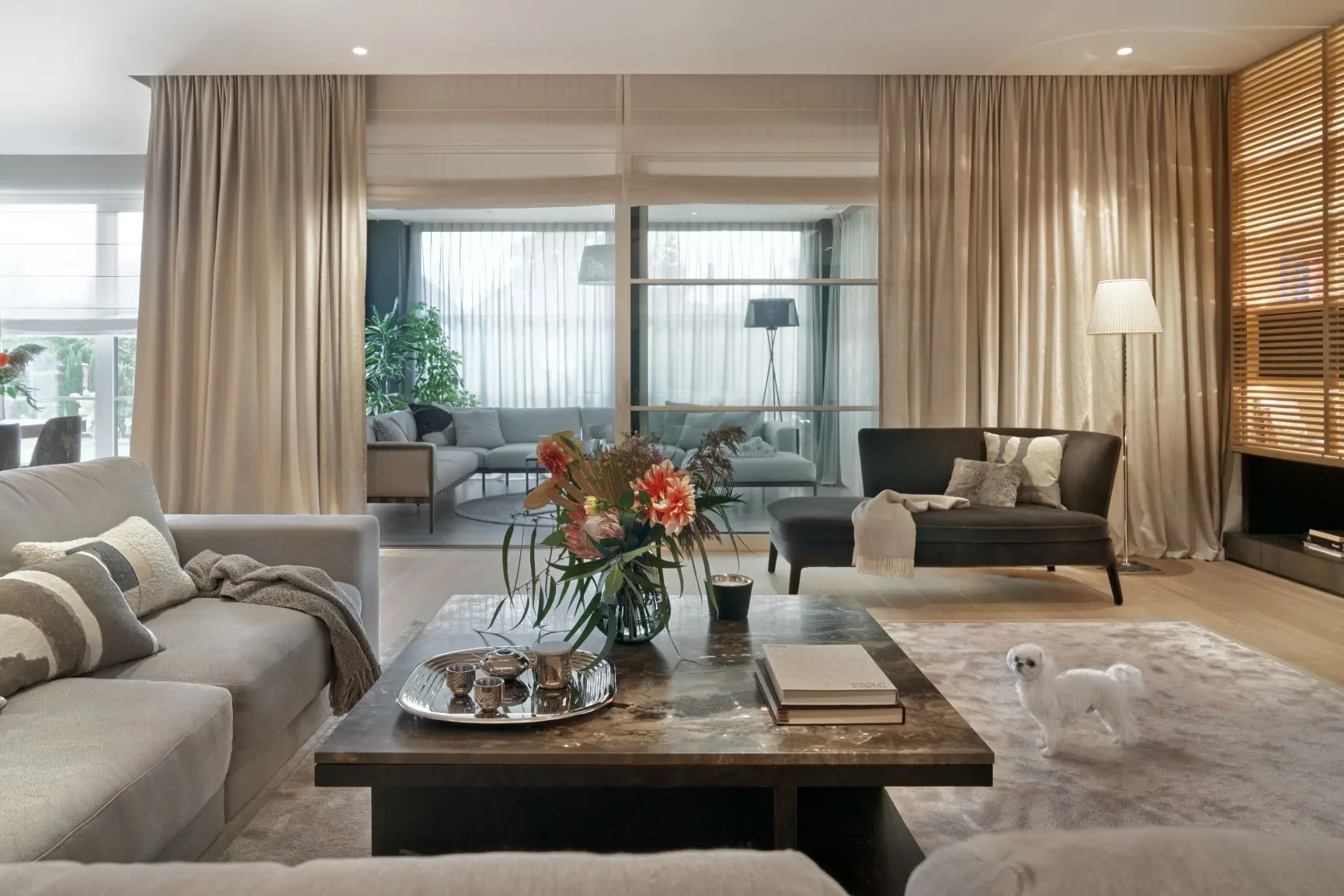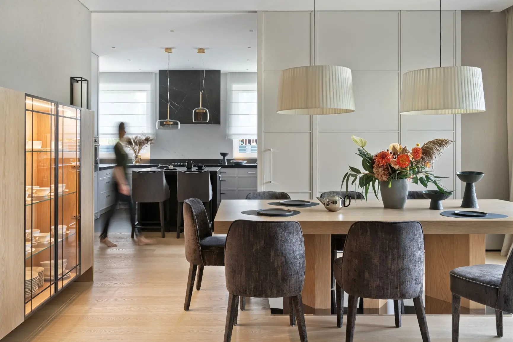 Wnętrza zaprojektowane przez architektkę wnętrz Katarzynę Kraszewską emanują szykiem i przytulnością. Wykończone są z niespotykaną wprost uważnością, z wykorzystaniem najwyższej jakości materiałów: naturalnego kamienia, drewna, metalu i szkła. Niepowtarzalny styl architektki to elegancja i uniwersalny projekt, który z biegiem lat nie straci na atrakcyjności, nawet gdy zmienią się trendy i wnętrzarska moda. O tym wszystkim wiedzieli inwestorzy, który poprosili Katarzynę Kraszewską o stworzenie projektu ich nowego domu położonego na przedmieściach dużego miasta.