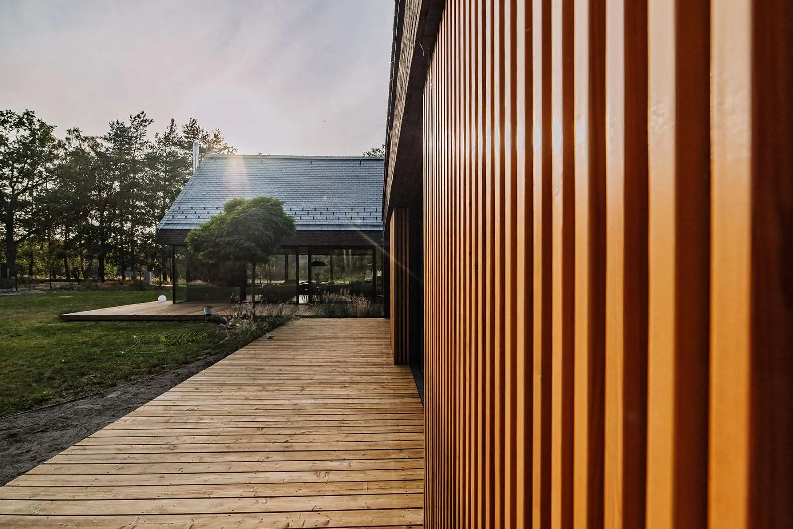 Unikamy tej technologii, a wszystkie nasze domy są z prefabrykatów, klinkieru, drewna lub tynku cementowego, który został praktycznie zapomniany przez epokę styropianu. Przez stulecia, aż do lat 90-tych niemal wszystkie budynki były tynkowane tradycyjnym gładkim tynkiem cementowym. Staramy się wracać do tej „starej” estetyki elewacji. A prefabrykaty dają taką możliwość i na stałe zagościły już w naszej pracowni także w budynkach apartamentowych czy wielorodzinnych. Ponad połowa wszystkich projektów w biurze to wielowarstwowe konstrukcje prefabrykowane.