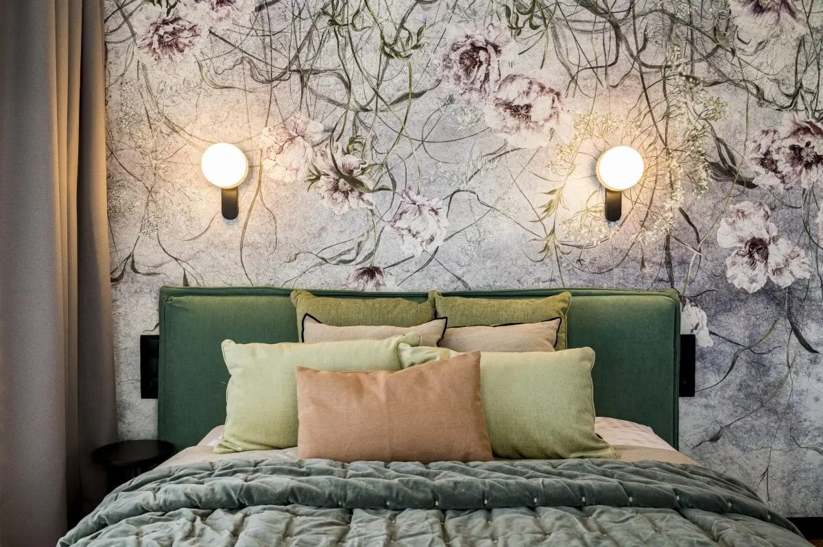 Kolorem przewodnim aranżacji autorstwa studio METRY jest zieleń w różnych odcieniach – od jasnej eukaliptusowej po soczysty leśny kolor. Zastosowana przez projektantkę kolorystyka oraz dodatki w stylu boho, nadają aranżacji wakacyjnego klimatu. Szczególnie w sypialni zadbano o tego typu atmosferę.