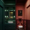 Granat i grafit – mocniejsze, „dorosłe” kolory, które dodają charakteru; świetne do łazienki dla chłopca w wersji nowoczesnej.