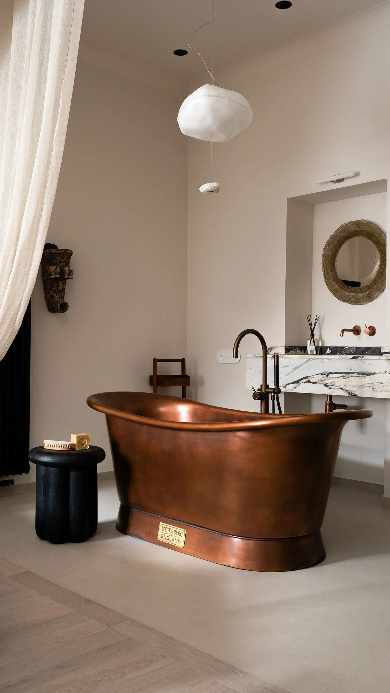 Dominujące w tej estetyce formy są dalekie od geometrycznej surowości – zamiast ostrych krawędzi i linii prostych królują organiczne, płynne kształty, przypominające fale, delikatne krzywizny skał wygładzonych przez czas i wodę, harmonijnie wtapiające się w otoczenie. Materiały wykończeniowe zyskują bardziej naturalny, niemal nieoszlifowany charakter – drewno ukazuje swoją autentyczną strukturę, kamień pozostaje surowy, tkaniny otulają swoją miękkością, a kolory przyjmują barwy zaczerpnięte prosto z natury, otulając przestrzeń spokojnymi tonami ciepłych beżów, przygaszonych szarości, oliwkowej zieleni i subtelnych błękitów.