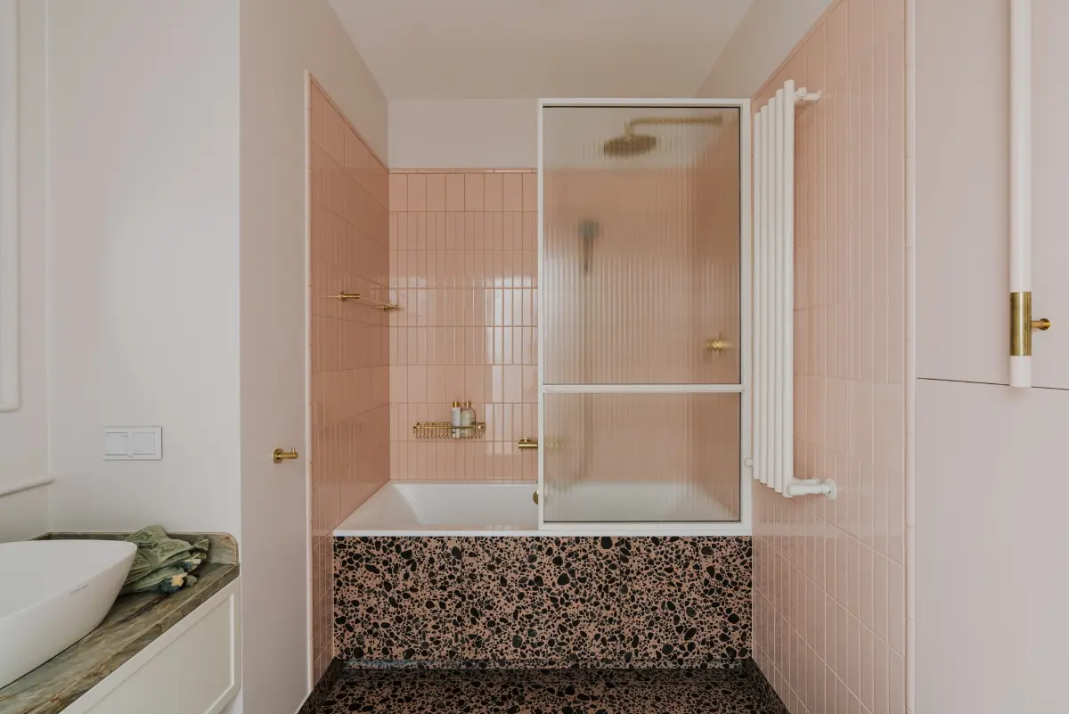 Niewątpliwy wpływ na jakość i wygląd wnętrz ubranych w róż jest oferta produktowa światowych marek. Piękne kolekcje płytek, które coraz częściej zaskakują nie tylko wyszukanym wzornictwem, ale i imponującymi rozmiarami, armatura w wykończeniu rose gold, wodoodporne tapety a nawet kolorowa ceramika – to elementy, po które chętnie sięgają architekci. W efekcie tworzą nietuzinkowe projekty różowych łazienek, wyróżniających się najlepszym designem i jakością zastosowanych materiałów. W takim przypadku nie ma mowy o kiczu, co idealnie ukazują poniższe realizacje.