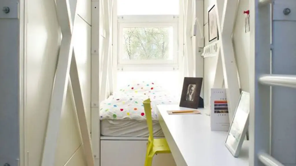Historia tego domu rozpoczyna się w 2012 roku. Dom, który praktycznie trudno zauważyć – wciśnięto go bowiem w szczelinę między powojennym blokiem a przedwojenną kamienicą. Dom w najwęższym miejscu ma zaledwie 92 cm szerokości, a w najszerszym 152 cm. Mimo niewielkiej przestrzeni w środku znalazło się wszystko co jest niezbędne do życia. Na trzech poziomach umieszczono strefę do pracy, spania, kuchnię i łazienkę.