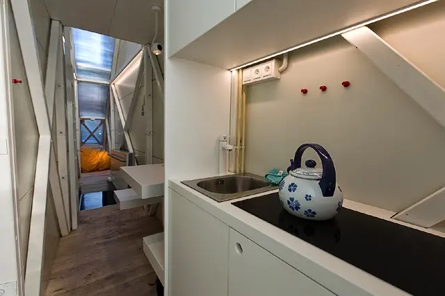 Ta niezwykła przestrzeń to instalacja artystyczna, której inwestorem była Fundacja Polskiej Sztuki Nowoczesnej. Została stworzona jako pracownia dla izraelskiego pisarza Etgara Kereta i miejsce pracy artystów z całego świata. Do 2018 roku mieszkało tu ponad 40 artystów z różnych krajów.