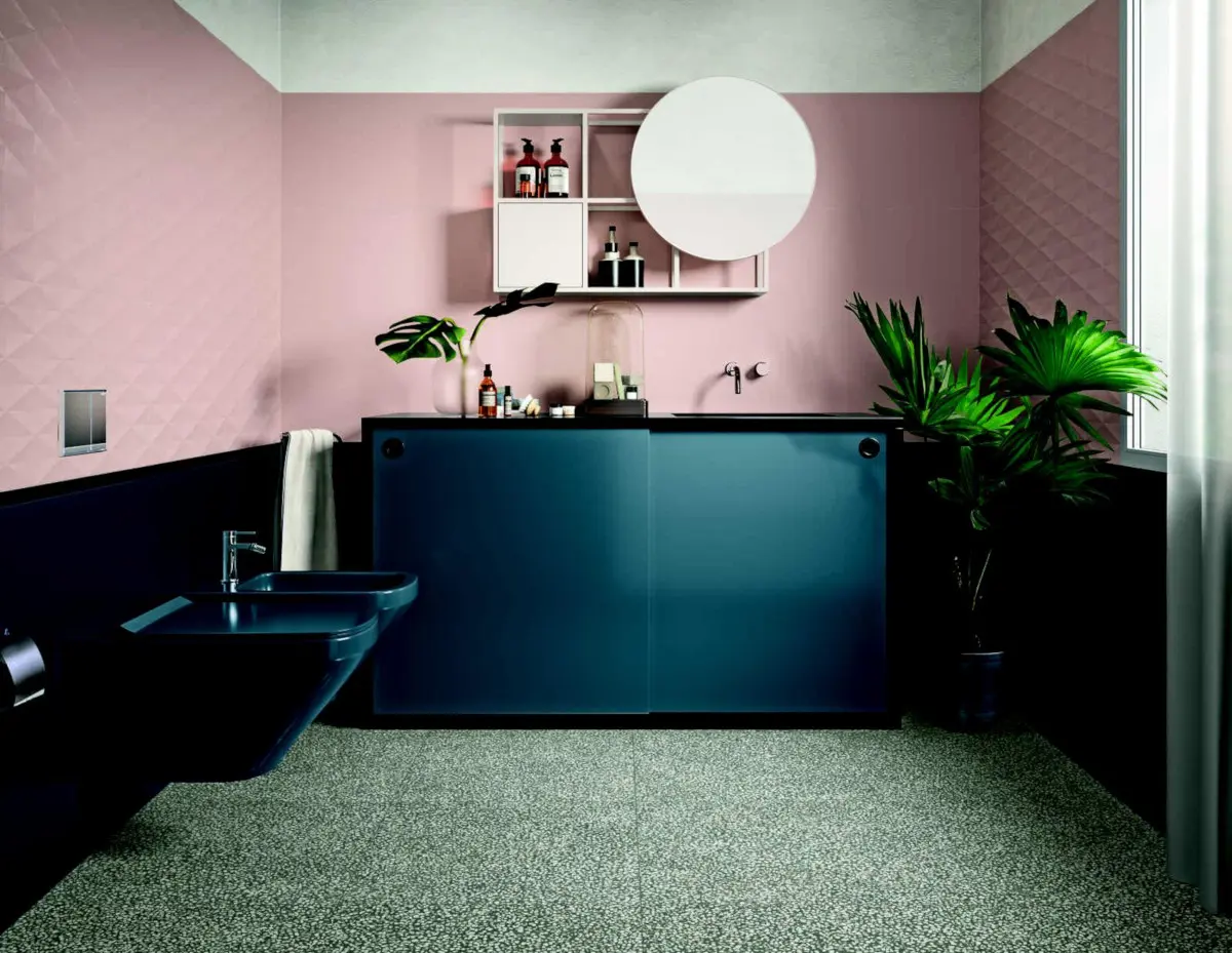 W linii Ecltettica znajdziemy piękne patchworki, geometryczne wzory nawiązujące do nieco psychodelicznych lat 70., faktury 3D oraz piękną paletę barw – 8 kolorów nawiązujących do świata mody: pudrowy róż, fiolet, taup, beż, biel, antracyt, granat, zieleń. Płytki z tej linii możemy zaliczyć do tych o większych rozmiarach. Głównie jest to wymiar: 40×120 cm, ale na przykład płytka prezentująca piękny motyw florystyczny jest w formacie 120×120 cm. Uzupełnieniem kolekcji są biżuteryjne mozaiki.